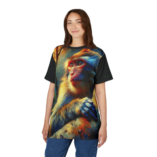 Monkey Vibrant Art Tee | Rhesus Macaque Colorful Unisex Cut & Sew T-Shirt, Wildlife Apparel, Unique Graphic Tee