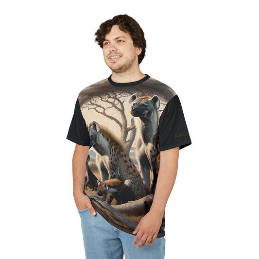 Hyena Family Art Tee | Unisex Cut & Sew T-Shirt, Wildlife Apparel, Unique Graphic Tee, Birthday Gift