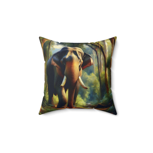 Square Pillow - Elephant Throw Pillow with Asiatic Bull Elephant in Post-Impressionist Style Art
