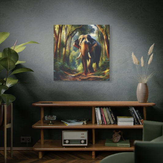 Asiatic Elephant Bull on Forest Trail - Post-Impressionist Style Canvas Wall Art
