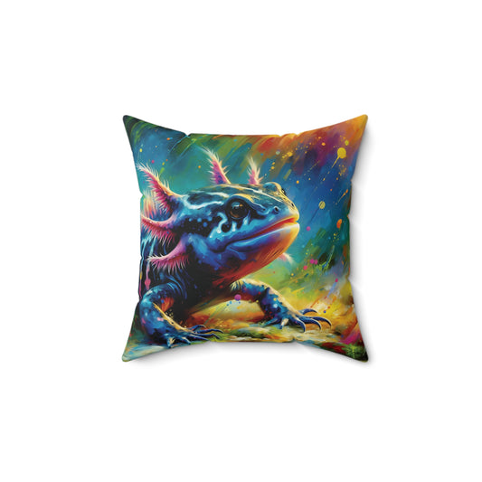 Axolotl Throw Pillow - Mexican Salamander Expressionist Style Art on a Faux Suede Pillow