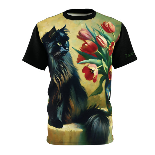 The Artist's Black Cat with Red Tulips Vibrant Art Tee | Colorful Unisex Cut & Sew T-Shirt, Wildlife Apparel, Unique Graphic Tee, Birthday GiftRegular price From $ 54.95 USDRegular priceUnit price / per-