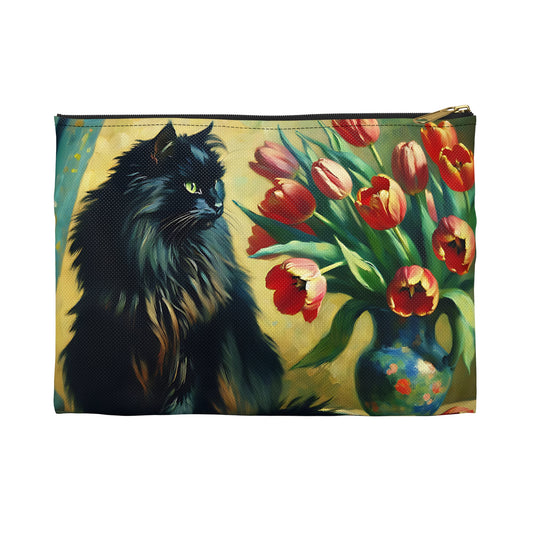 Cat Lover's Accessory Pouch, Artists Black Cat with Red Tulips, Cute Cat Makeup Bag, Pet-Themed Gift, Floral Storage Bag, Cat Mom EssentialRegular price From $ 26.95 USDRegular priceUnit price / per-