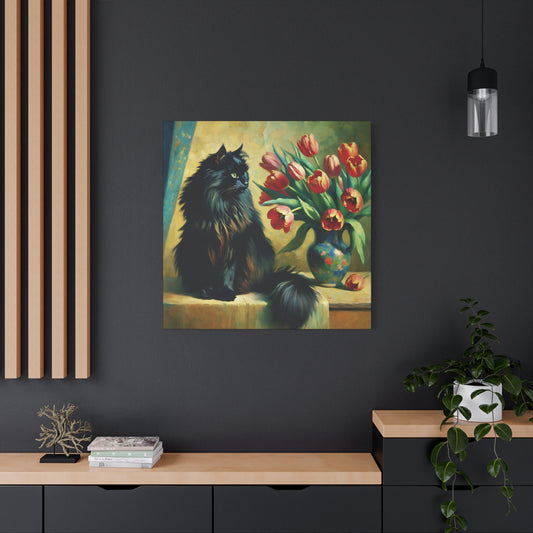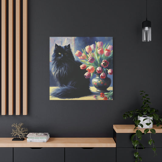 Canvas Wall Art - Artist's Black Cat with Pink Tulips, Impressionist StyleRegular price From $ 62.95 USDRegular priceUnit price / per-