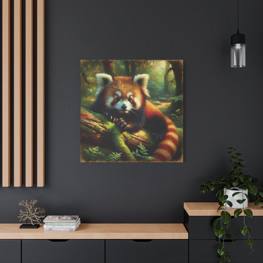Red Panda in Temperate Forest, Impressionist Style Canvas Wall Art