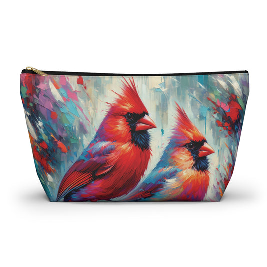 Early Winter Cardinal Pair - T-bottom Pouch | Perfect for Cardinal Lovers, Gift for Pet Owners, Travel Accessory, Makeup Bag, Organizer