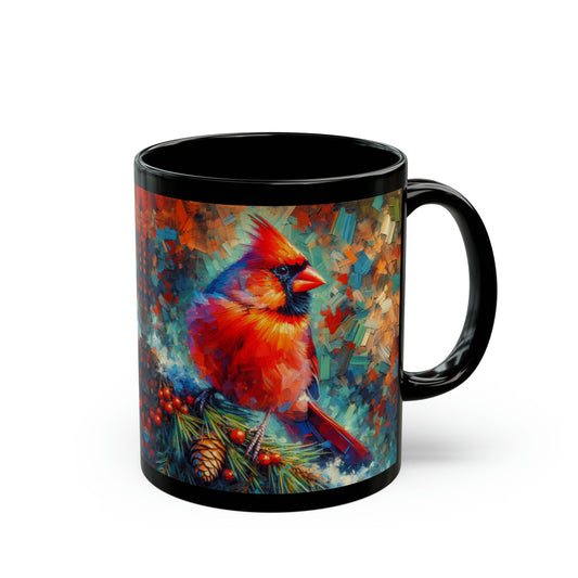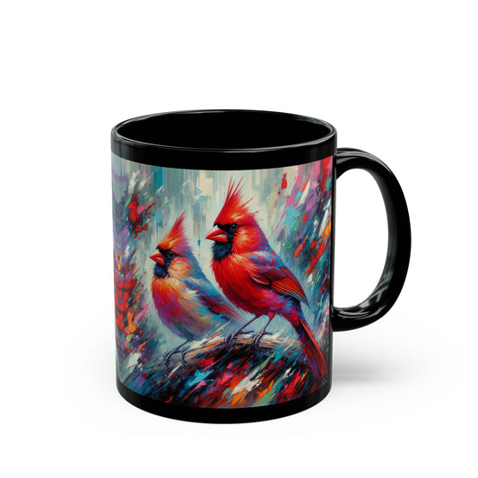 Early Winter Cardinal Pair - Black Mugs (11oz, 15oz)