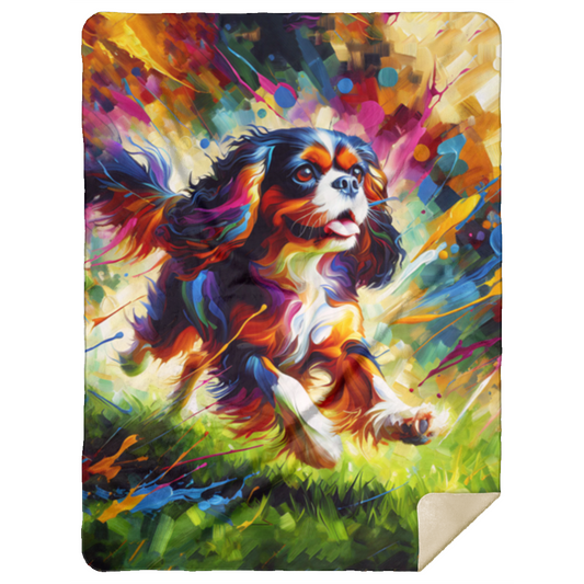 Cavalier King Charles Spaniel Frolicking Premium Sherpa Blankets