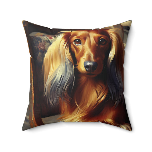 Doxie Pillow - Longhaired Dachshund on Wood Chair Faux Suede Square PillowRegular price From $ 54.95 USDRegular priceUnit price / per-