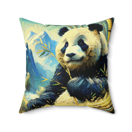 Panda Throw Pillow - Giant Panda in Bamboo Forest in Modern Impressionist Style Art