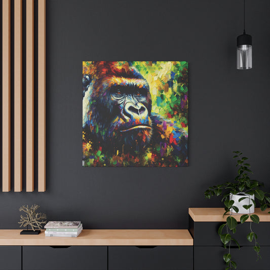 Gorilla Holding Baby Expressionist Canvas Art Print