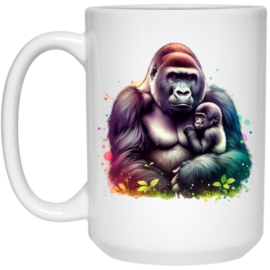 Gorilla Holding Baby Art Tee | Colorful Unisex Cut & Sew T-Shirt, Wildlife Apparel, Unique Graphic Tee, Birthday Gift