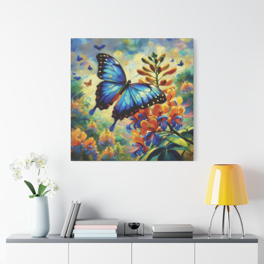 Butterfly Canvas Wall Art - Blue Morpho Butterfly, Impressionist Art Style