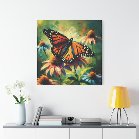 Butterfly Canvas Wall Art - Monarch Butterfly with Echinacea