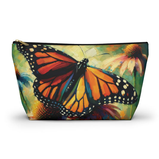 Monarch Butterfly with Echinacea T-bottom Pouch | Perfect for Nature Lovers, Gift for Women, Travel Accessory, Makeup Bag, Organizer