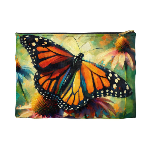 Butterfly Accessory Pouch, Monarch Butterfly with Echinacea Makeup Bag, Nature-Themed Gift, Floral Storage Bag, Craft Supply Pouch