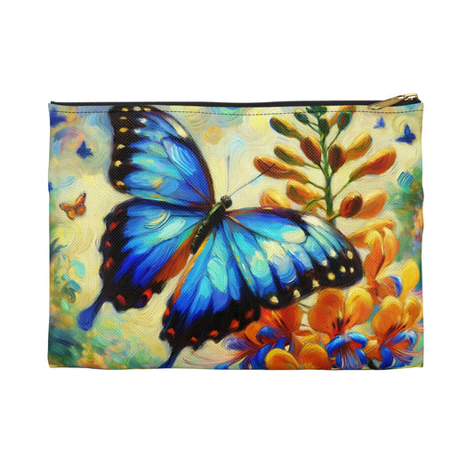 Blue Morpho Butterfly Accessory Pouch, Cute Butterfly Makeup Bag, Nature-Themed Gift, Floral Storage Bag