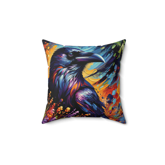 Faux Suede Throw Pillow in Expressionist Style Art - Colorful Raven PortraitRegular price From $ 54.95 USDRegular priceUnit price / per