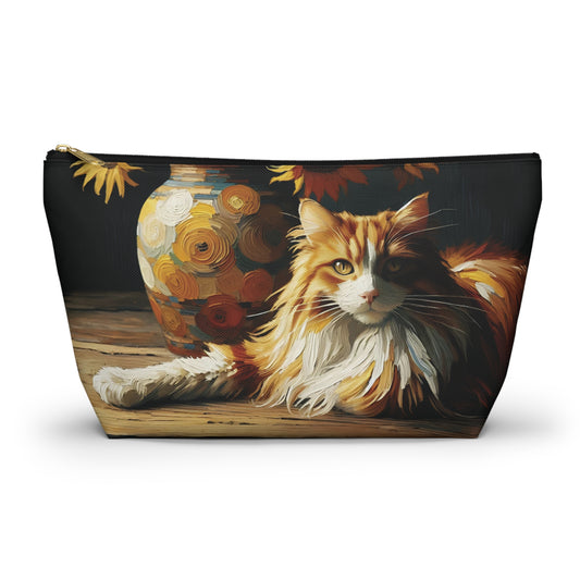 Orange and White Cat with Sunflowers T-bottom Pouch | Perfect for Cat Lovers, Gift for Pet Owners, Travel Accessory, Makeup Bag, Organizer
