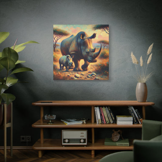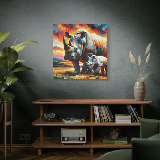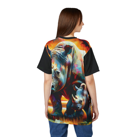 Rhinos at Sunset Art Tee | Colorful Unisex Cut & Sew T-Shirt, Wildlife Apparel, Unique Graphic Tee, Birthday Gift