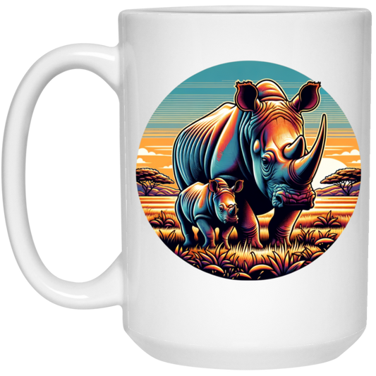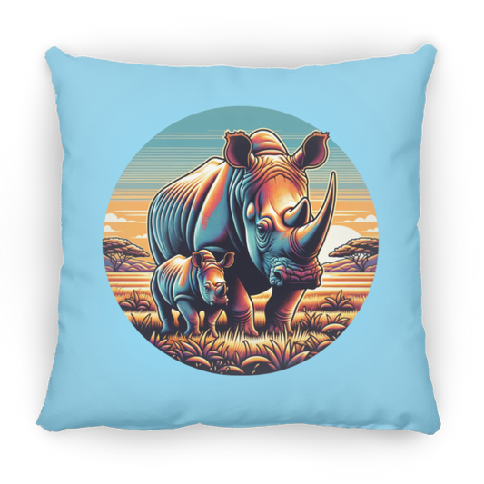 Rhino Mom and Calf Circle Graphic - Throw Pillows