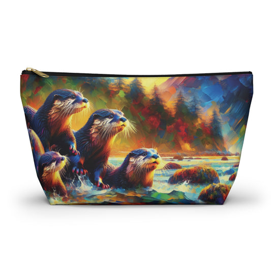 River Otters at Sunset T-bottom Pouch | Perfect for Otter Lovers, Gift for Nature Lovers, Travel Accessory, Makeup Bag, Organizer