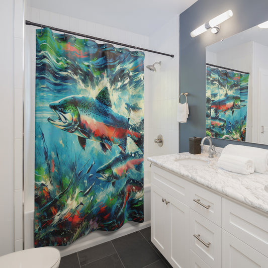 Salmon Returning Shower Curtain