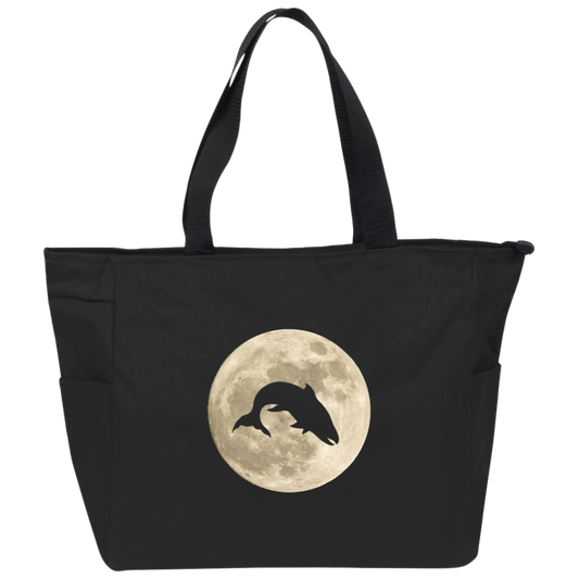 Salmon Moon Black Tote Bags