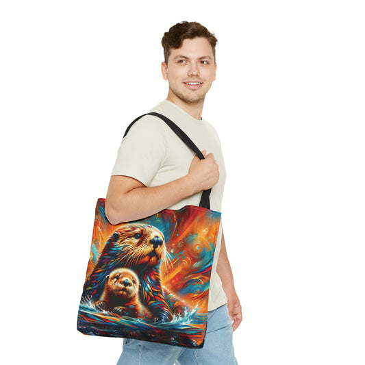 Sea Otters at Sunset Vibrant Art Tee | Colorful Unisex Cut & Sew T-Shirt, Wildlife Apparel, Unique Graphic Tee, Birthday Gift