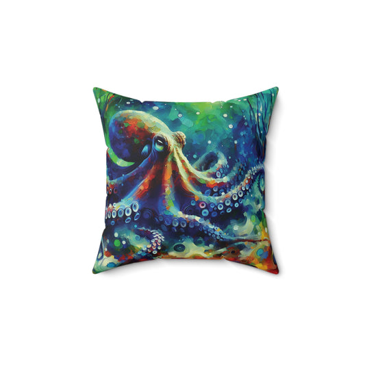 Octopus Garden Faux Suede Throw Pillow in Expressionist Style Art