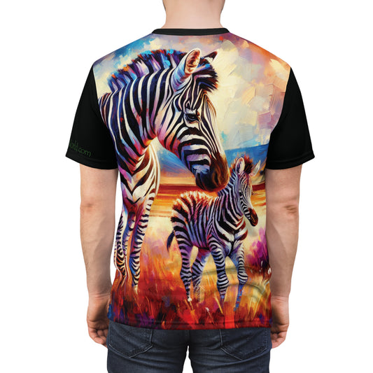 Zebra and Foal Art Tee | Colorful Unisex Cut & Sew T-Shirt, Wildlife Apparel, Unique Graphic Tee, Birthday Gift