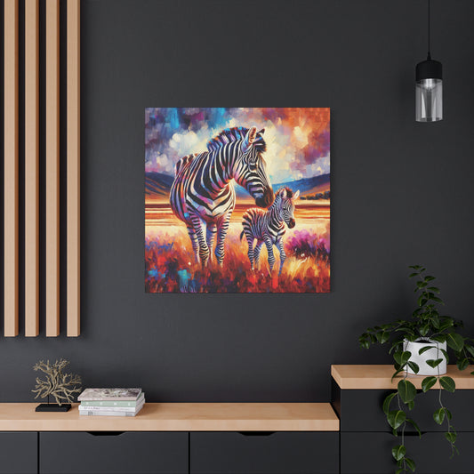 Zebra and Foal Expressionist Canvas Wall Art