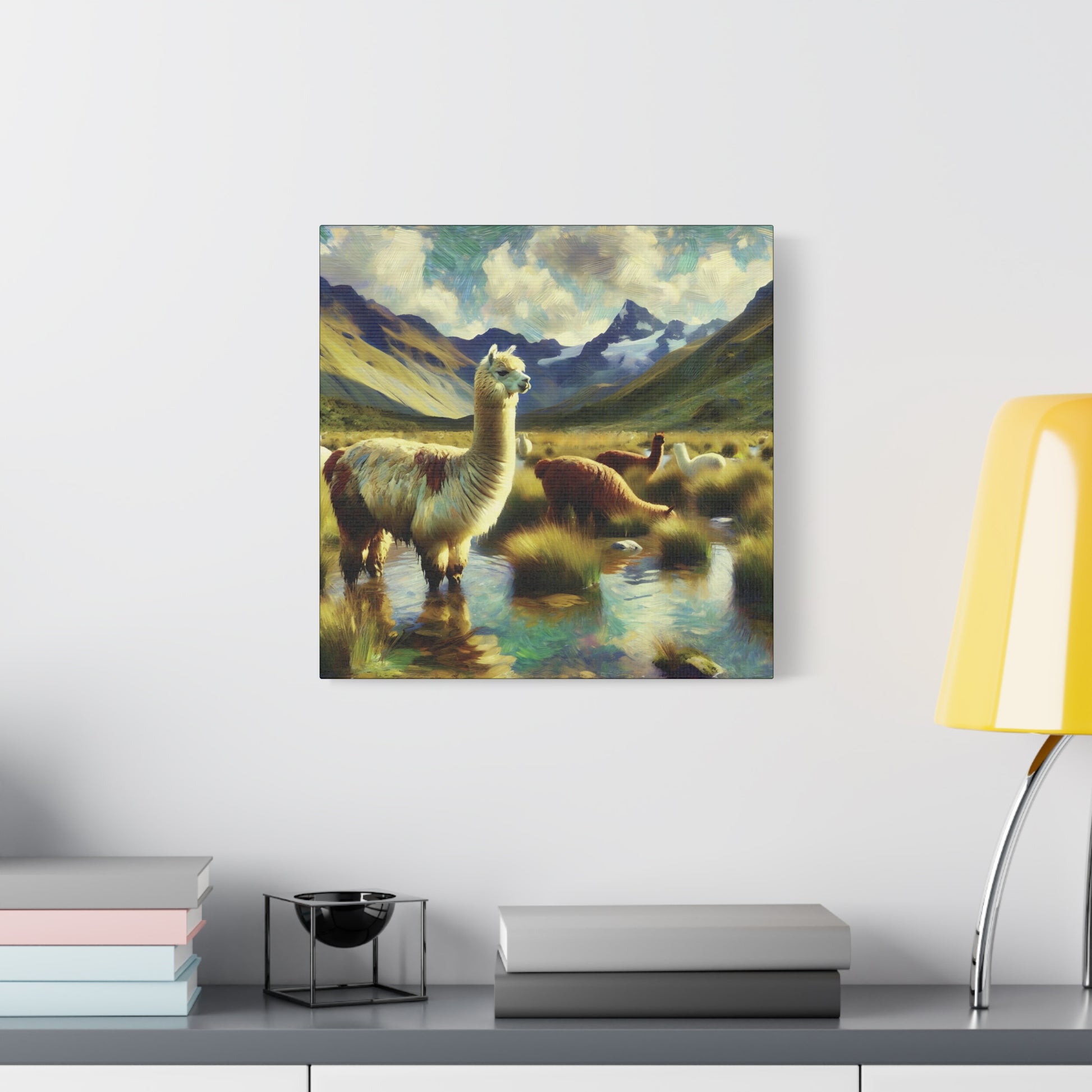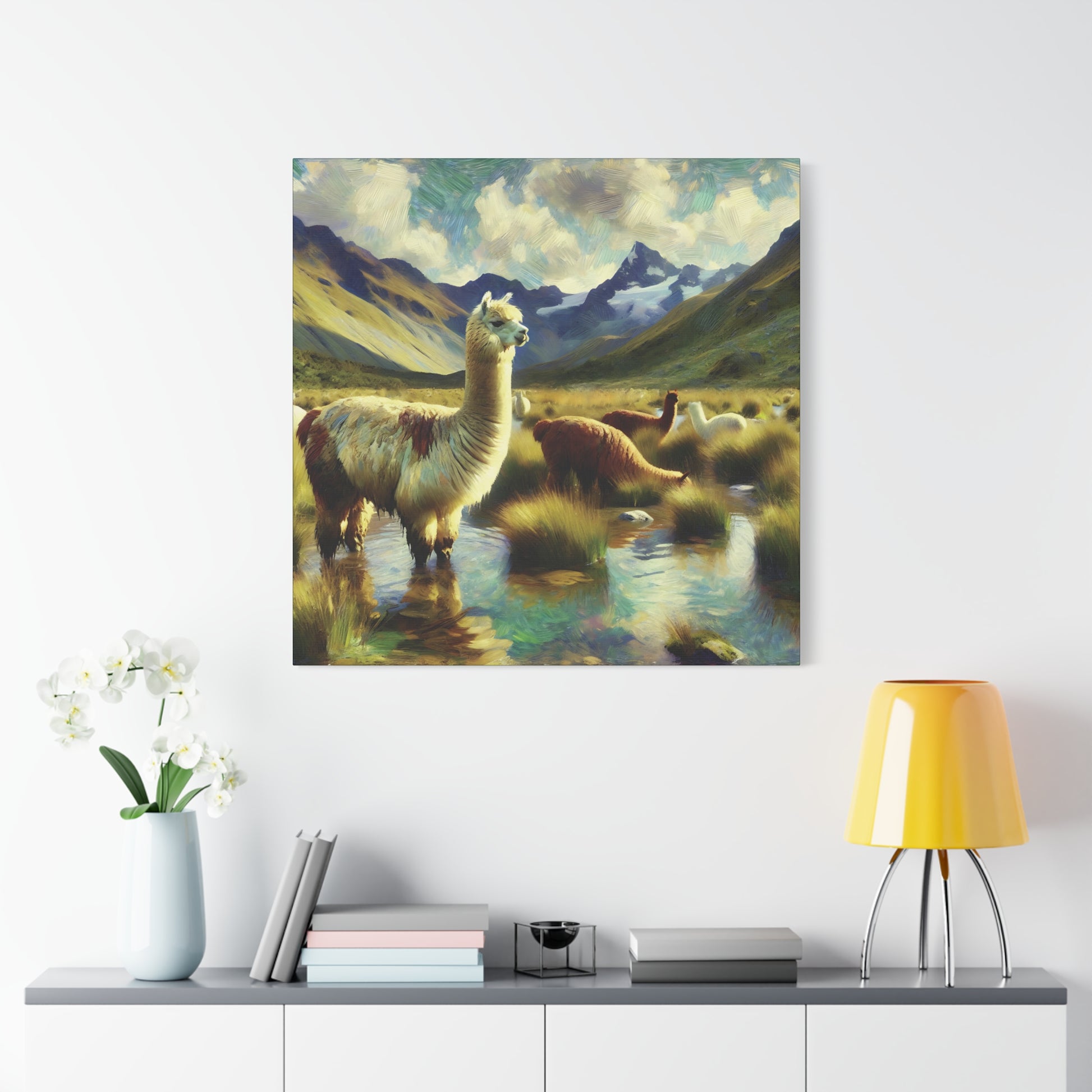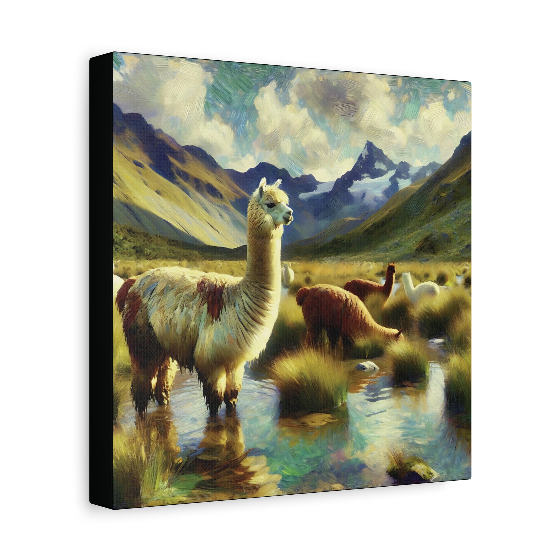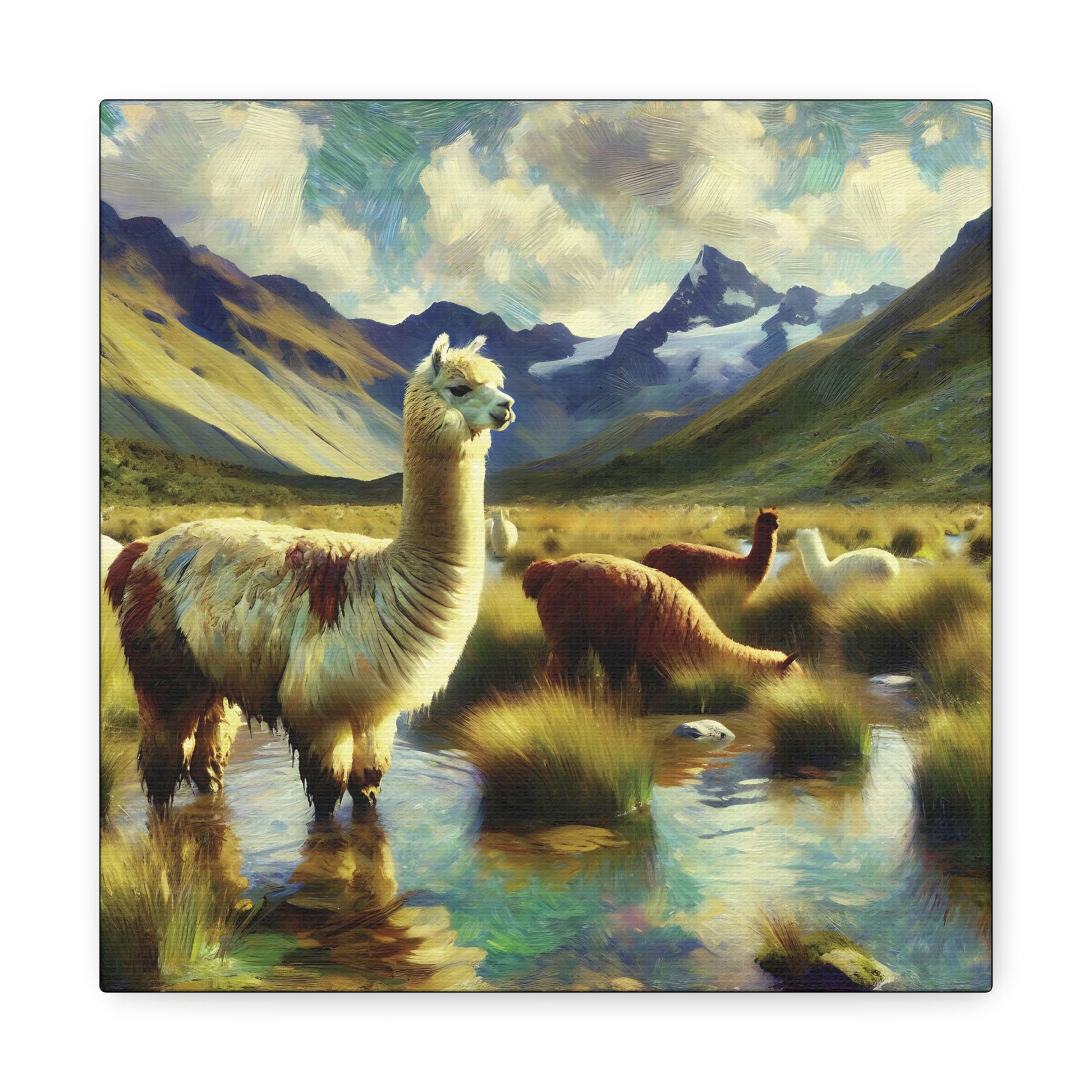 Bring a touch of whimsy and wild charm to your space with this Alpacas in the Andes Canvas Art Print. Featuring playful alpacas roaming the majestic Andes mountains, this impressionist wildlife artwork captures the lighthearted spirit of these gentle creatures. The vibrant colors and textured brushstrokes add depth and energy, making it a delightful focal point for any room. Perfect for animal lovers and art enthusiasts alike, this canvas print invites you to enjoy a joyful glimpse of nature’s quirky side every day.