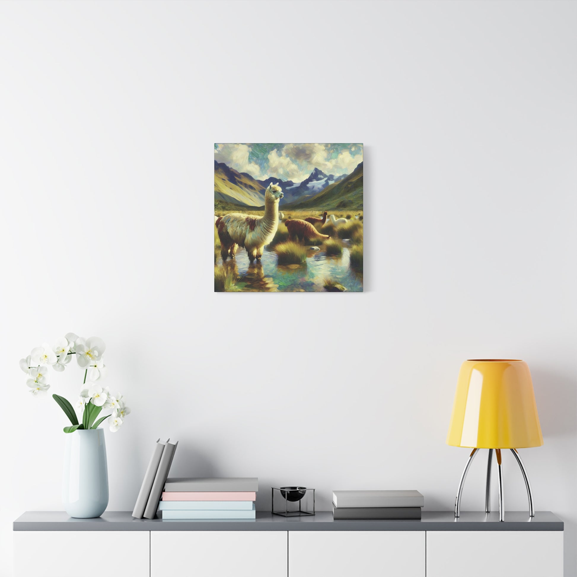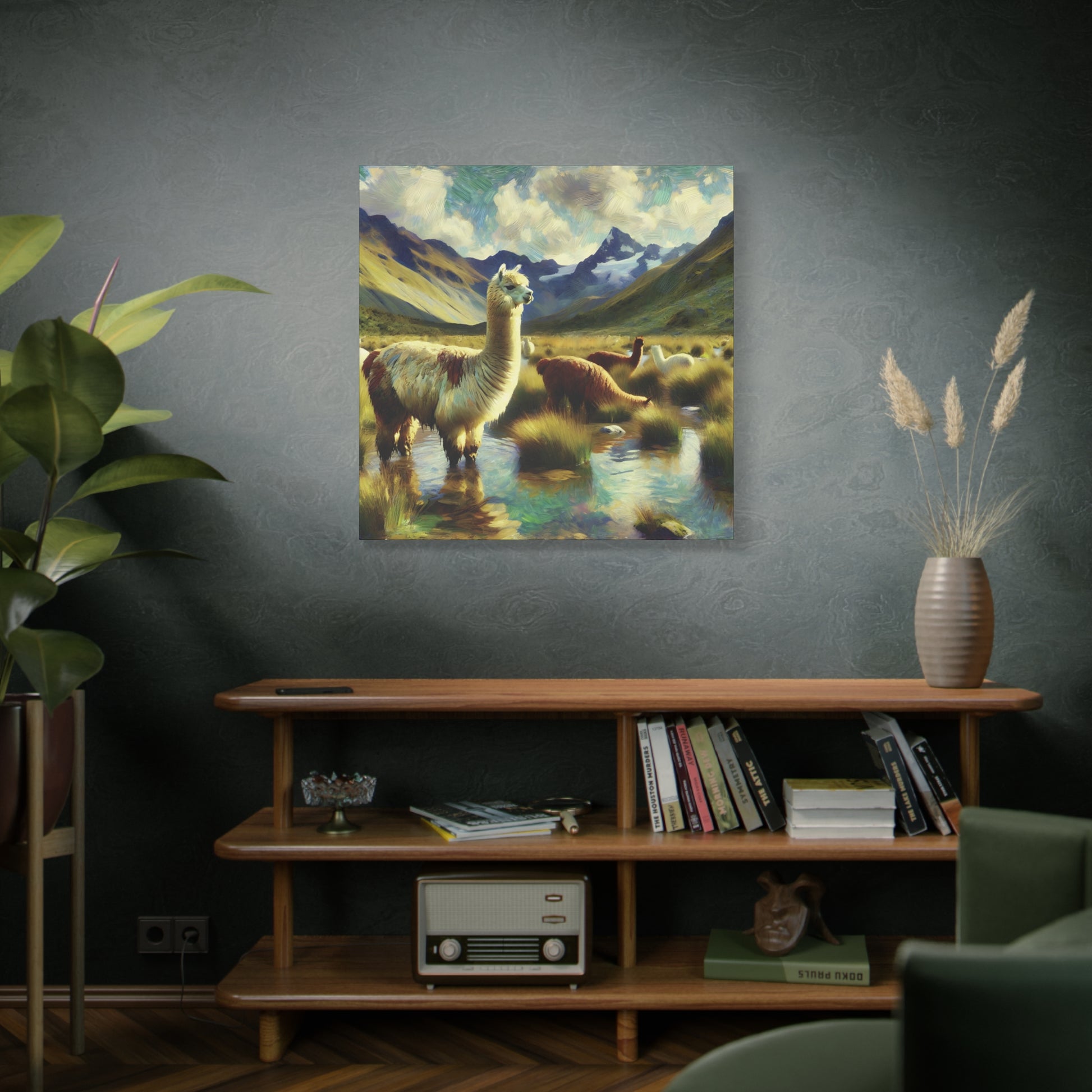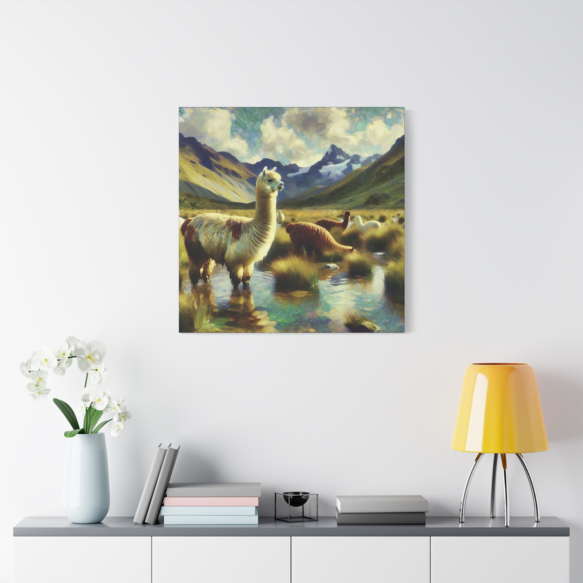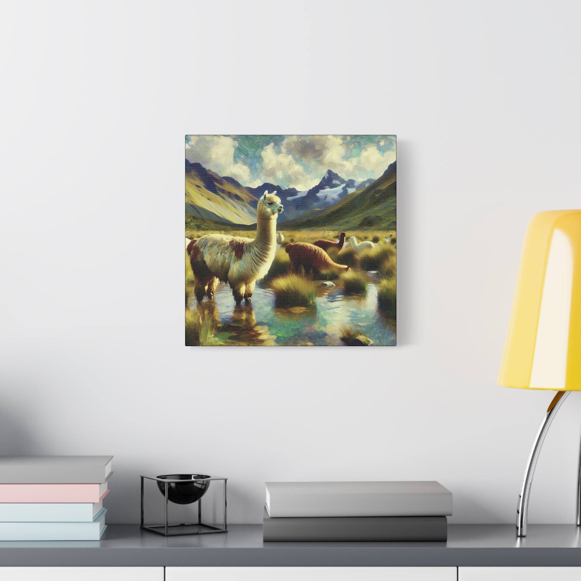 Bring a touch of whimsy and wild charm to your space with this Alpacas in the Andes Canvas Art Print. Featuring playful alpacas roaming the majestic Andes mountains, this impressionist wildlife artwork captures the lighthearted spirit of these gentle creatures. The vibrant colors and textured brushstrokes add depth and energy, making it a delightful focal point for any room. Perfect for animal lovers and art enthusiasts alike, this canvas print invites you to enjoy a joyful glimpse of nature’s quirky side every day.