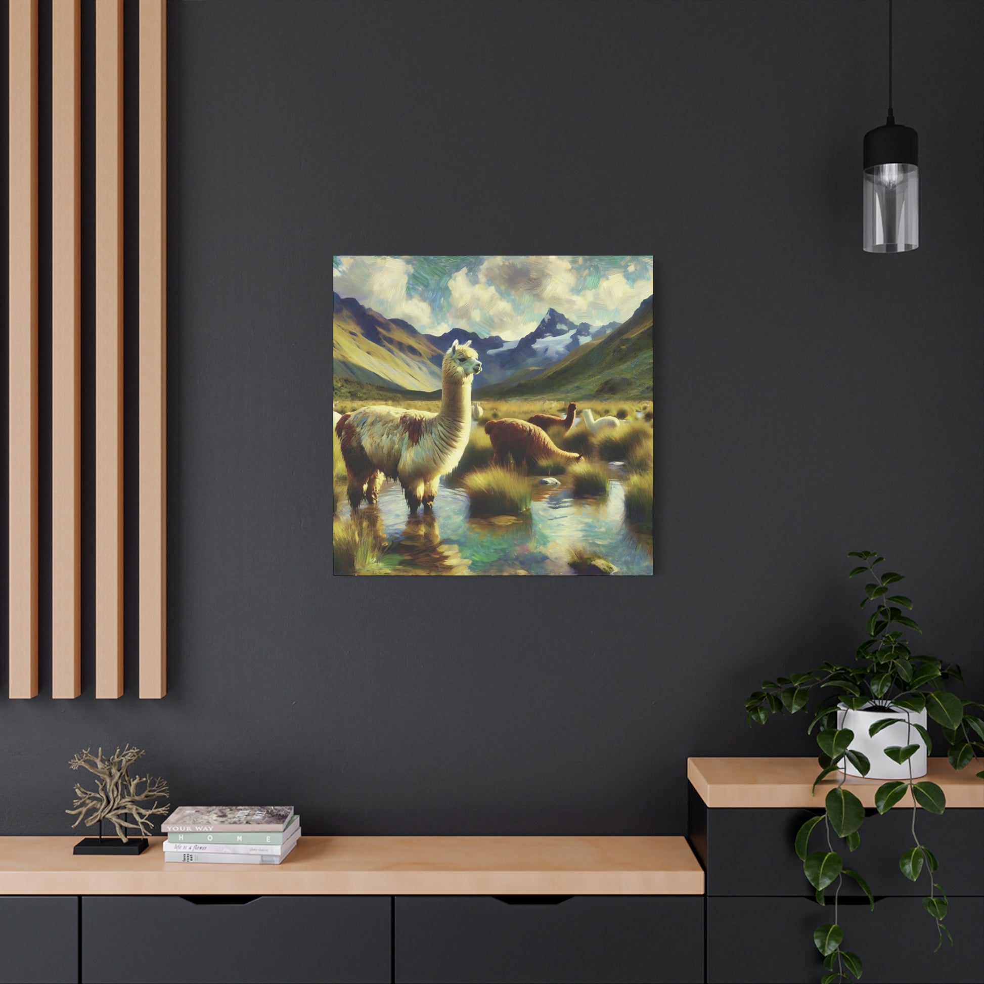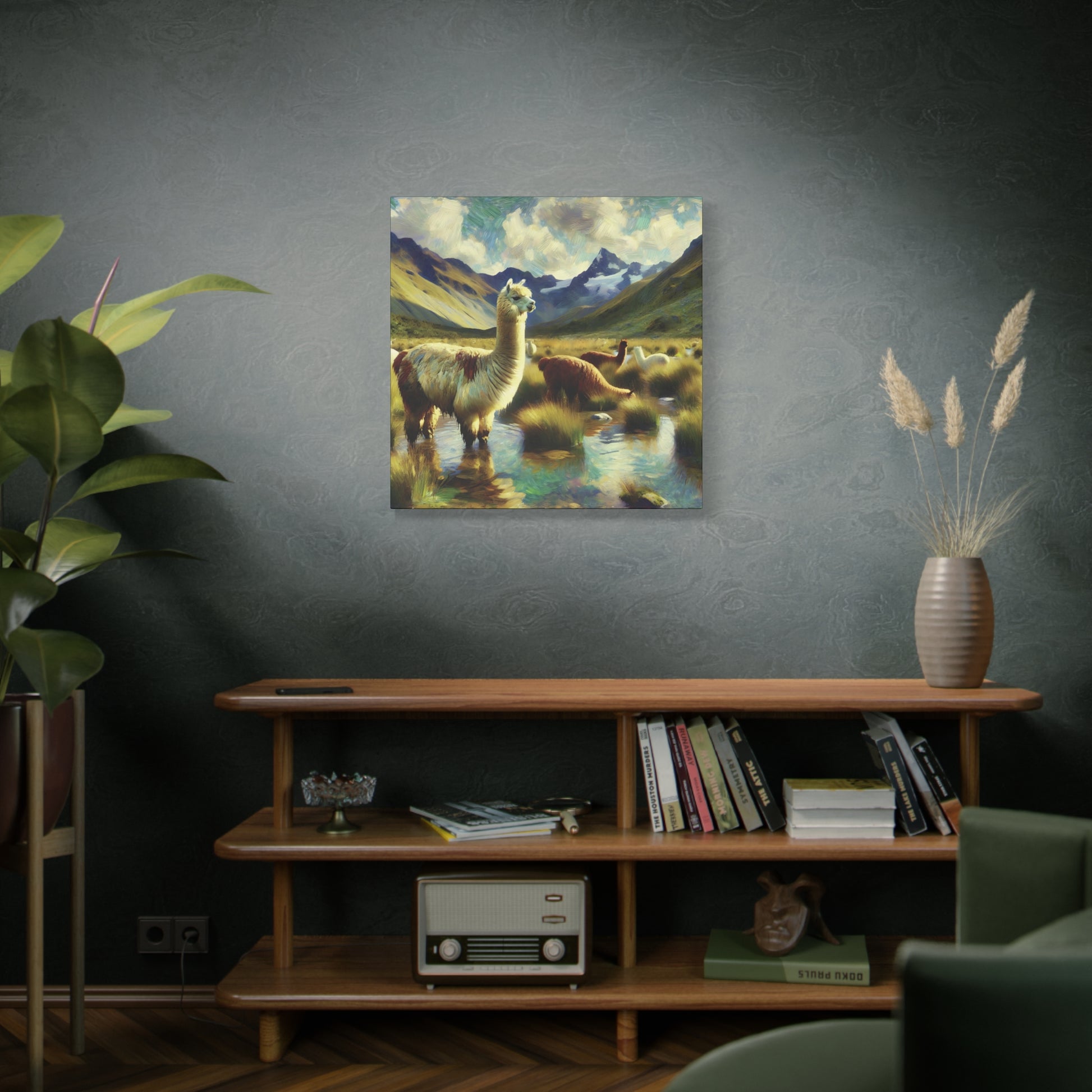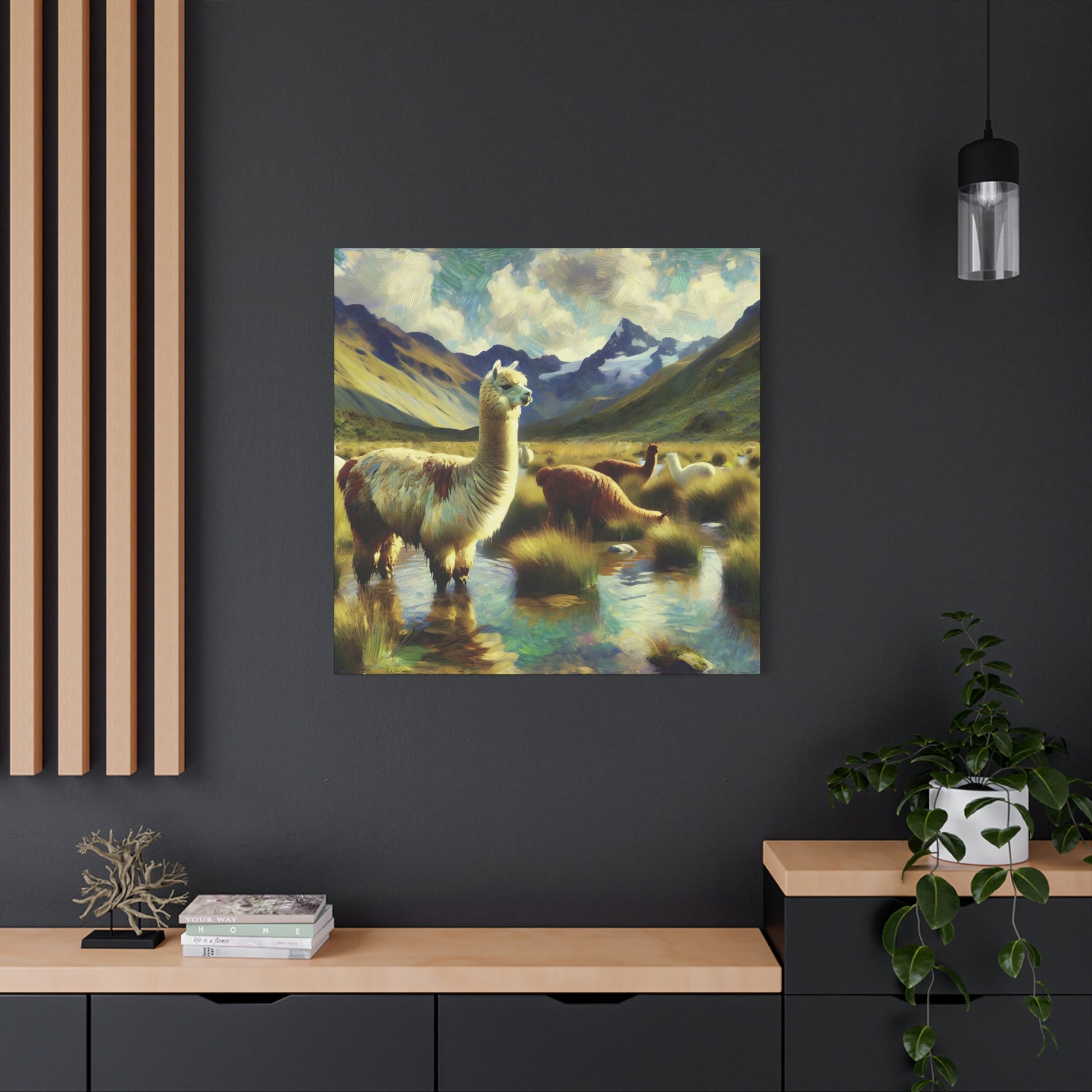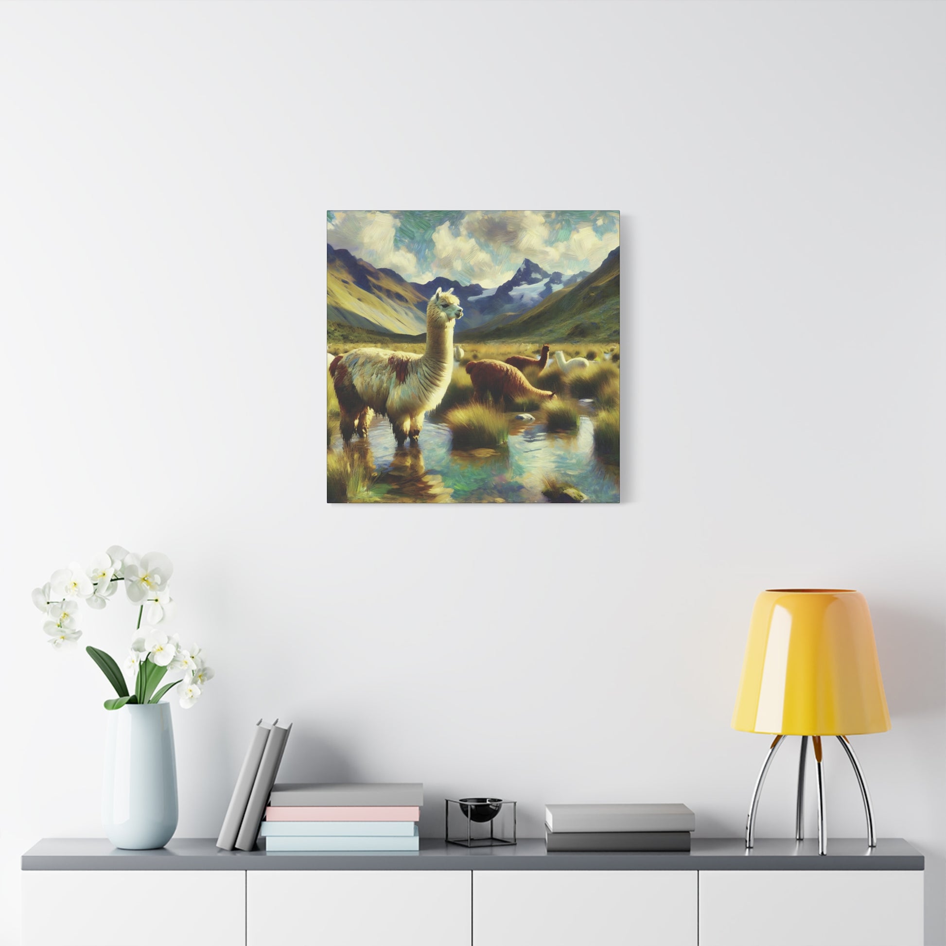 Bring a touch of whimsy and wild charm to your space with this Alpacas in the Andes Canvas Art Print. Featuring playful alpacas roaming the majestic Andes mountains, this impressionist wildlife artwork captures the lighthearted spirit of these gentle creatures. The vibrant colors and textured brushstrokes add depth and energy, making it a delightful focal point for any room. Perfect for animal lovers and art enthusiasts alike, this canvas print invites you to enjoy a joyful glimpse of nature’s quirky side every day.