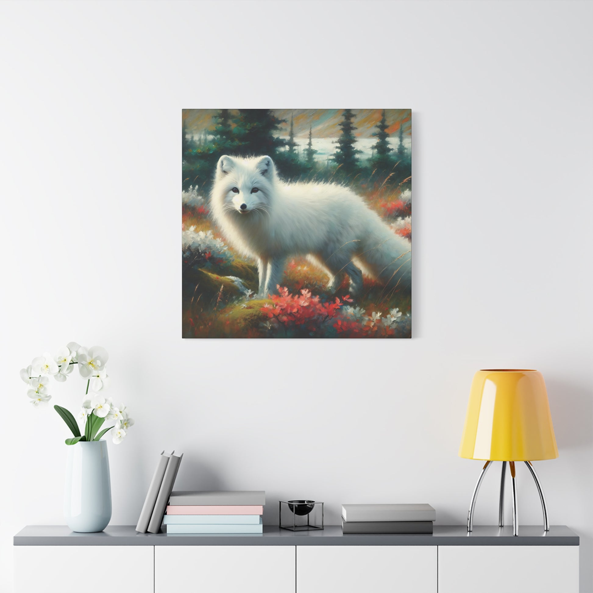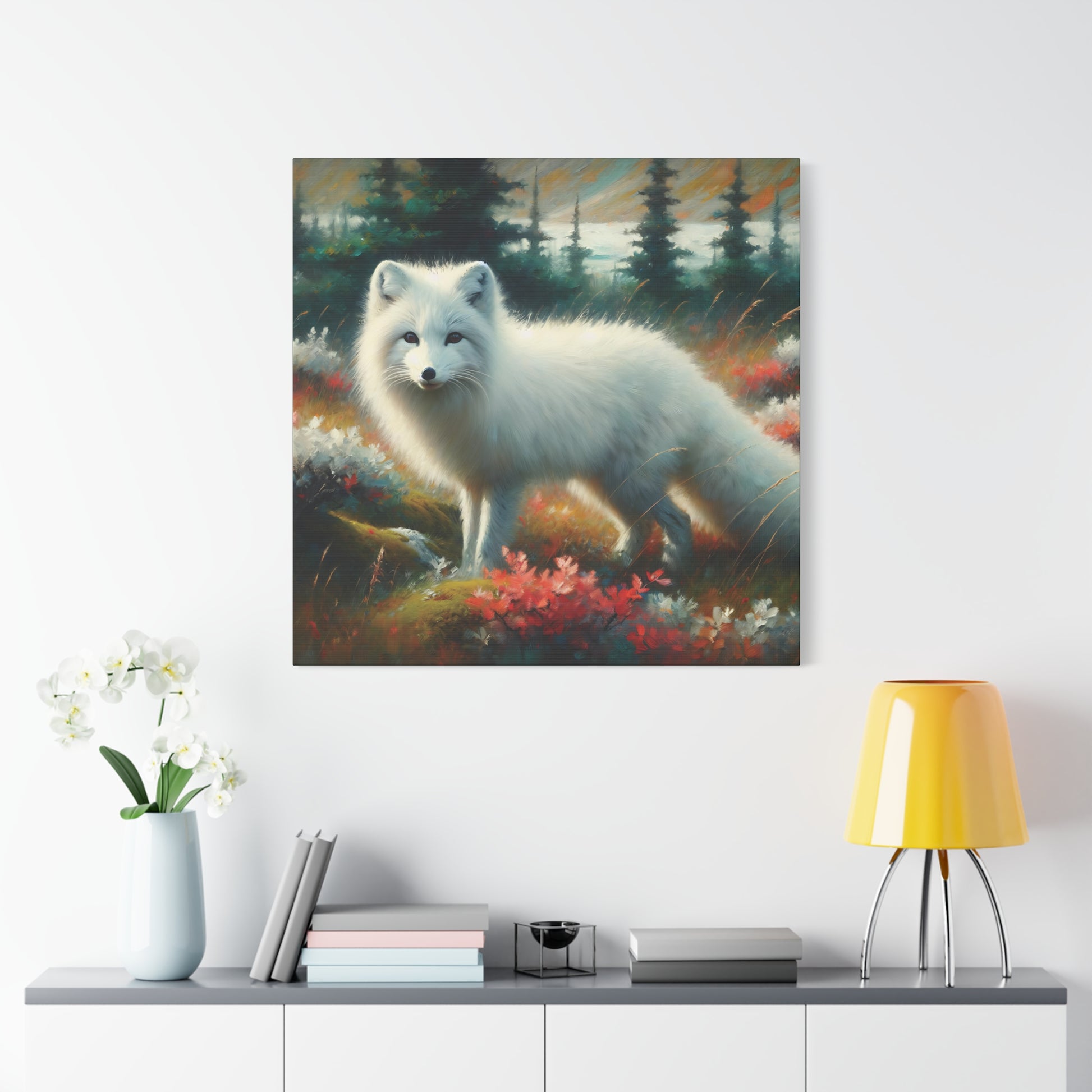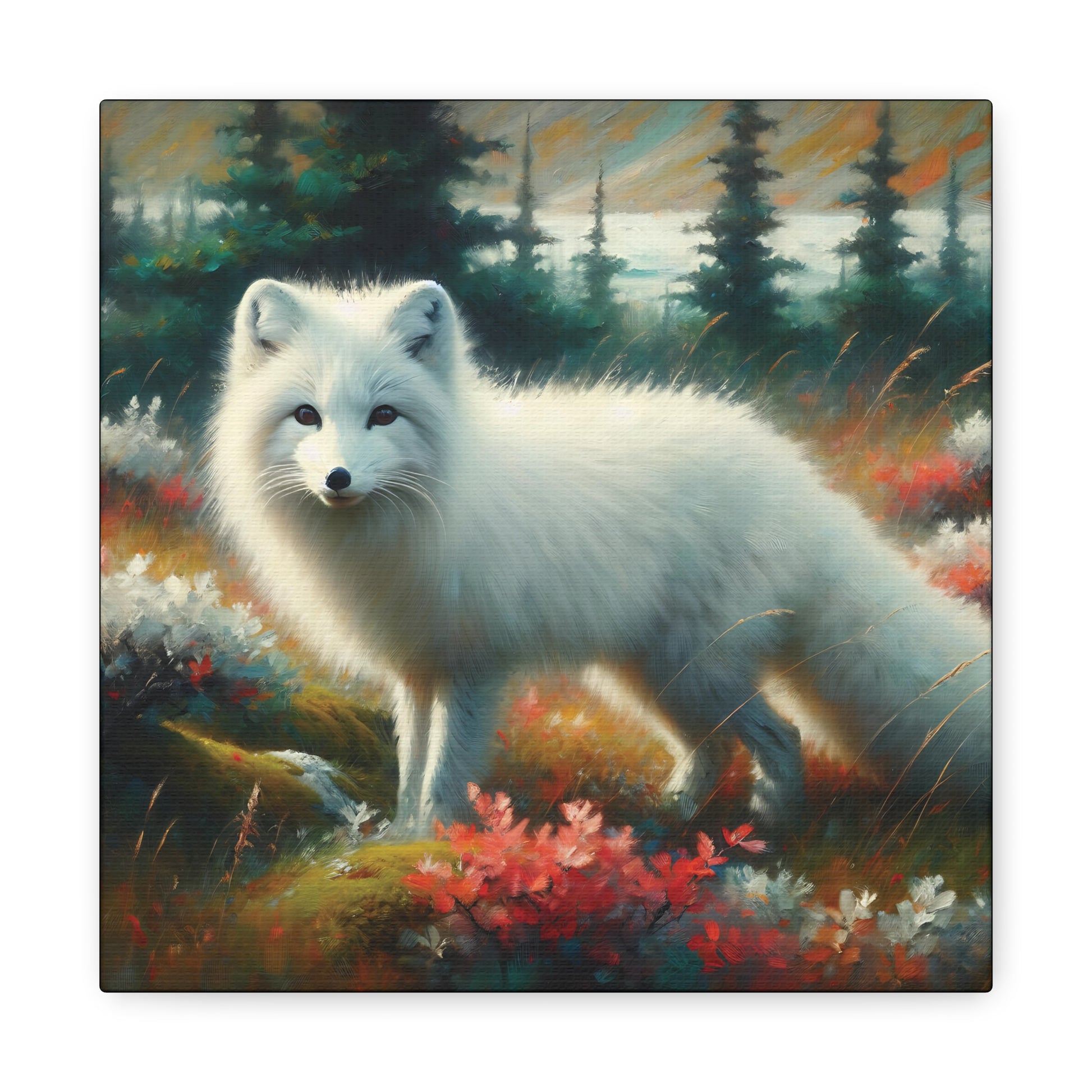 Arctic Fox Before the First Snow, Impressionist Canvas Wall Art