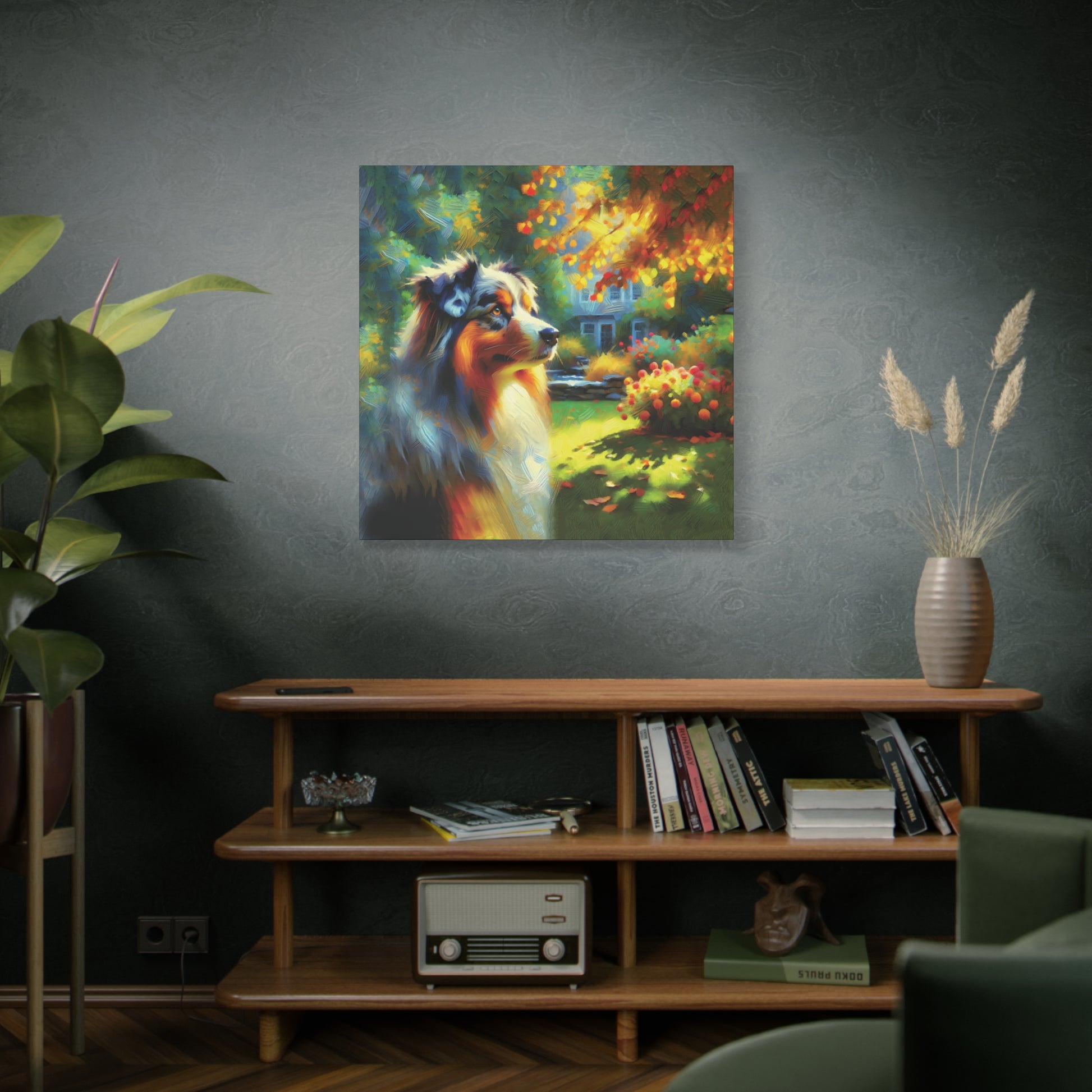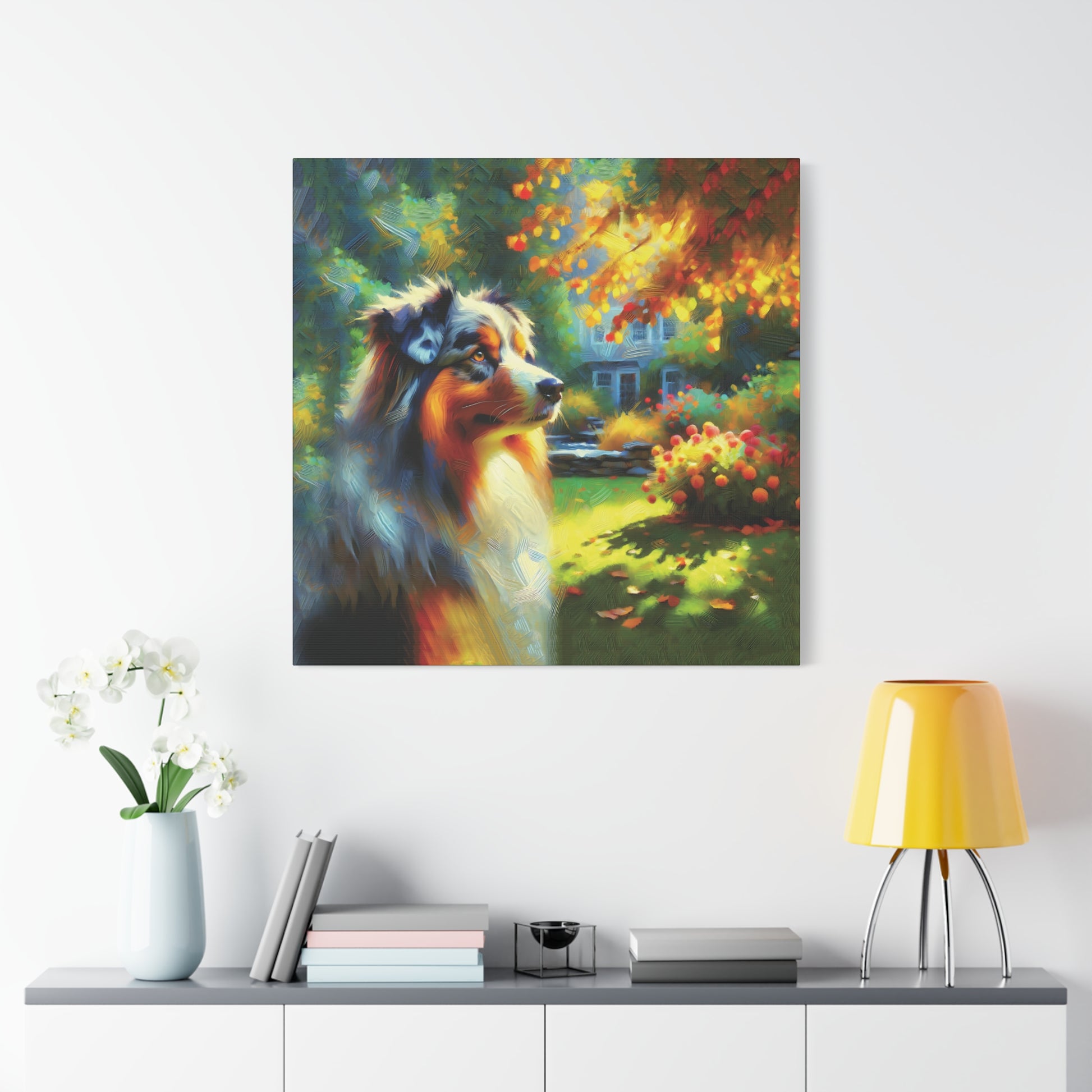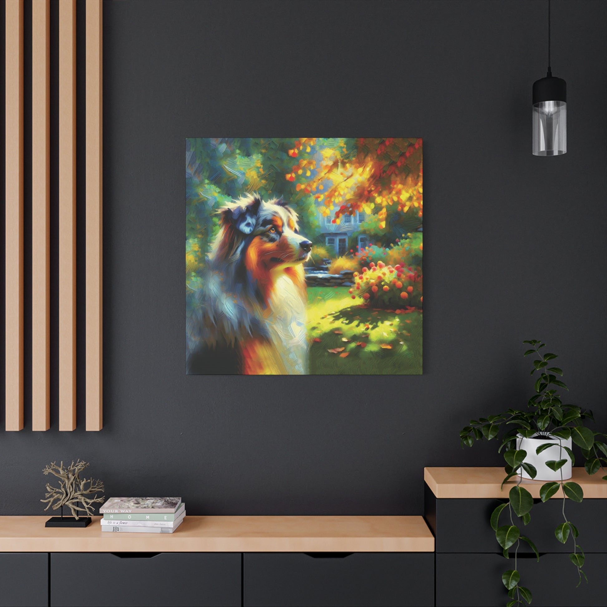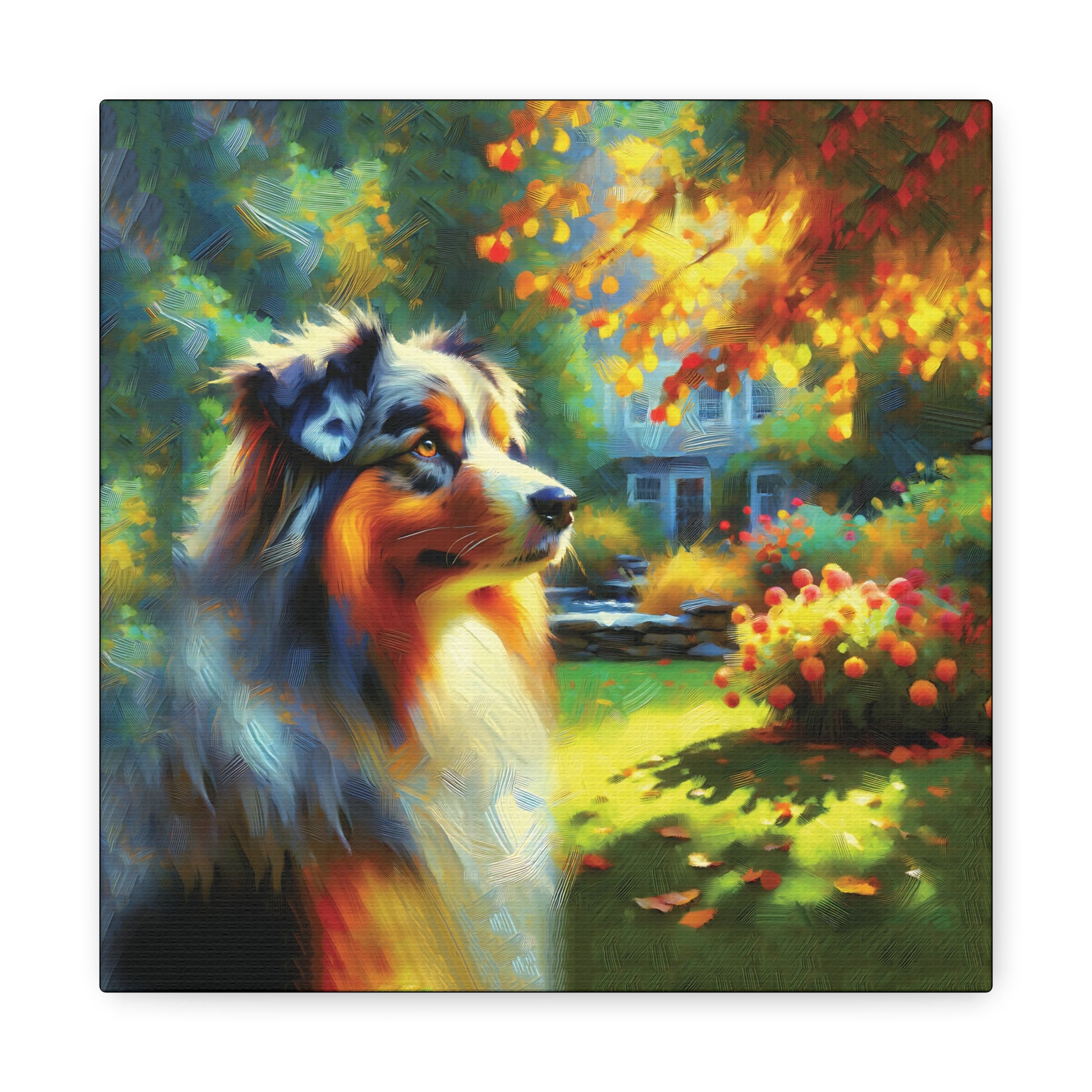 Is he fascinated by the changing colors, or is he watching a bird or maybe a squirrel? Whatever has his attention, he's got ours! Such a pretty Australian Shepherd!