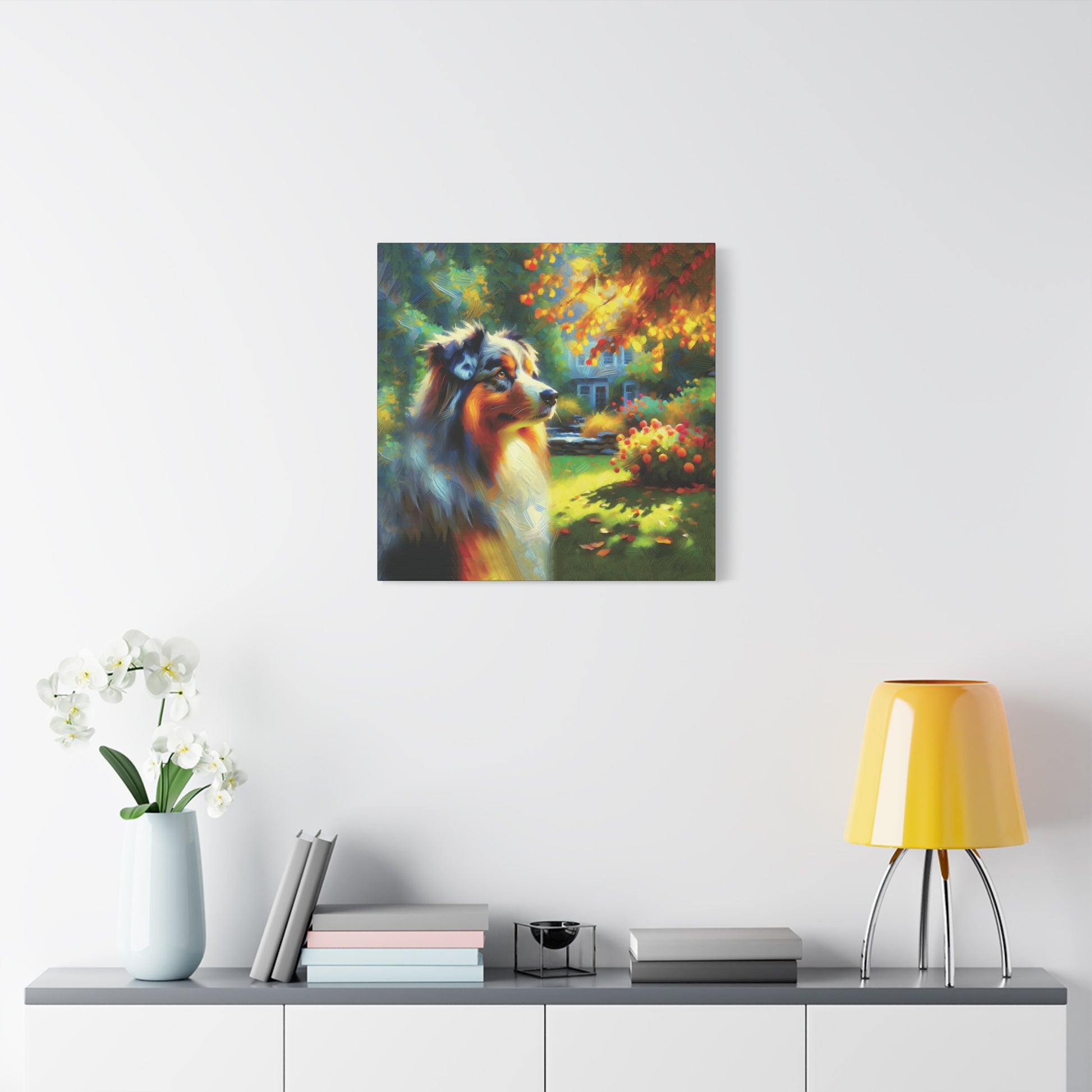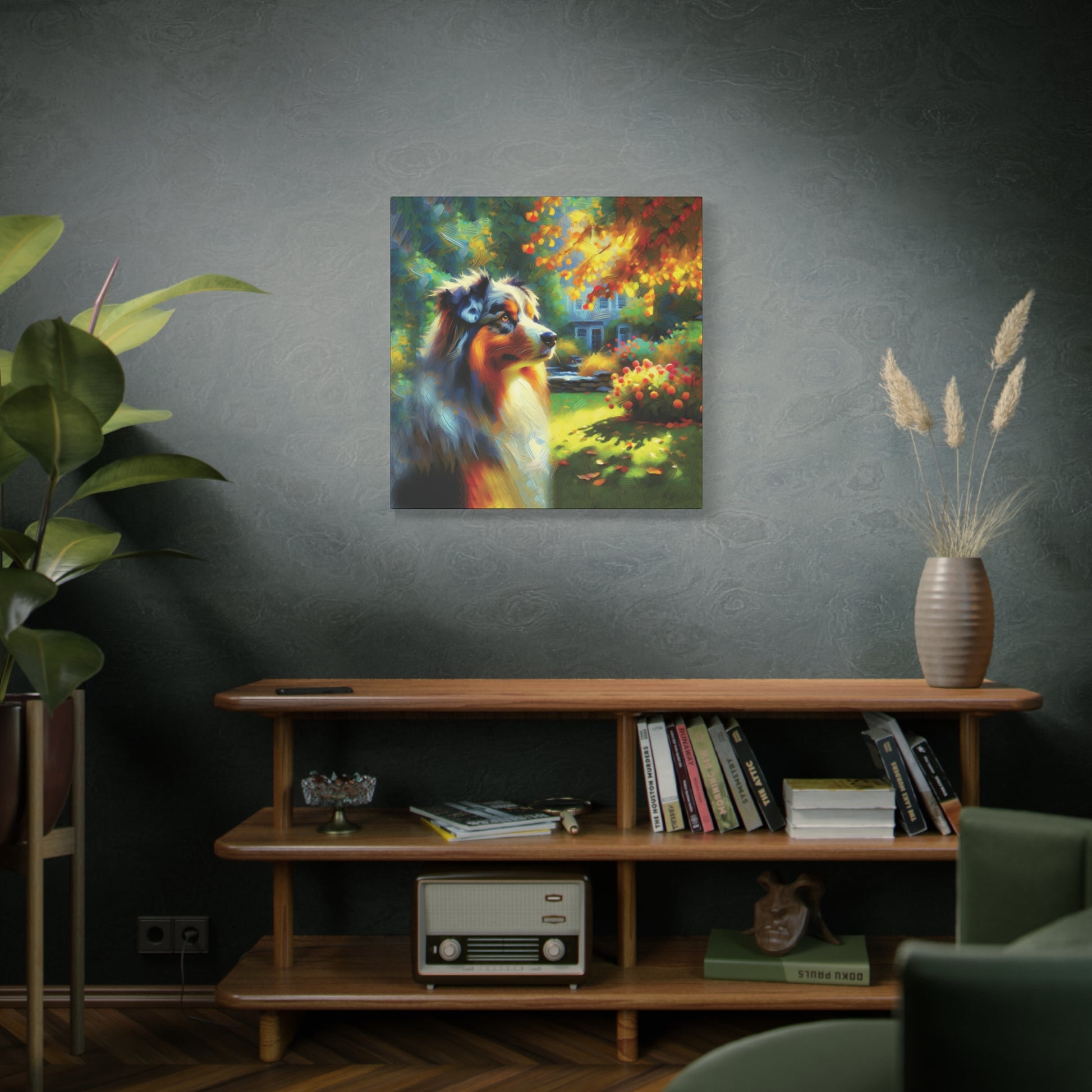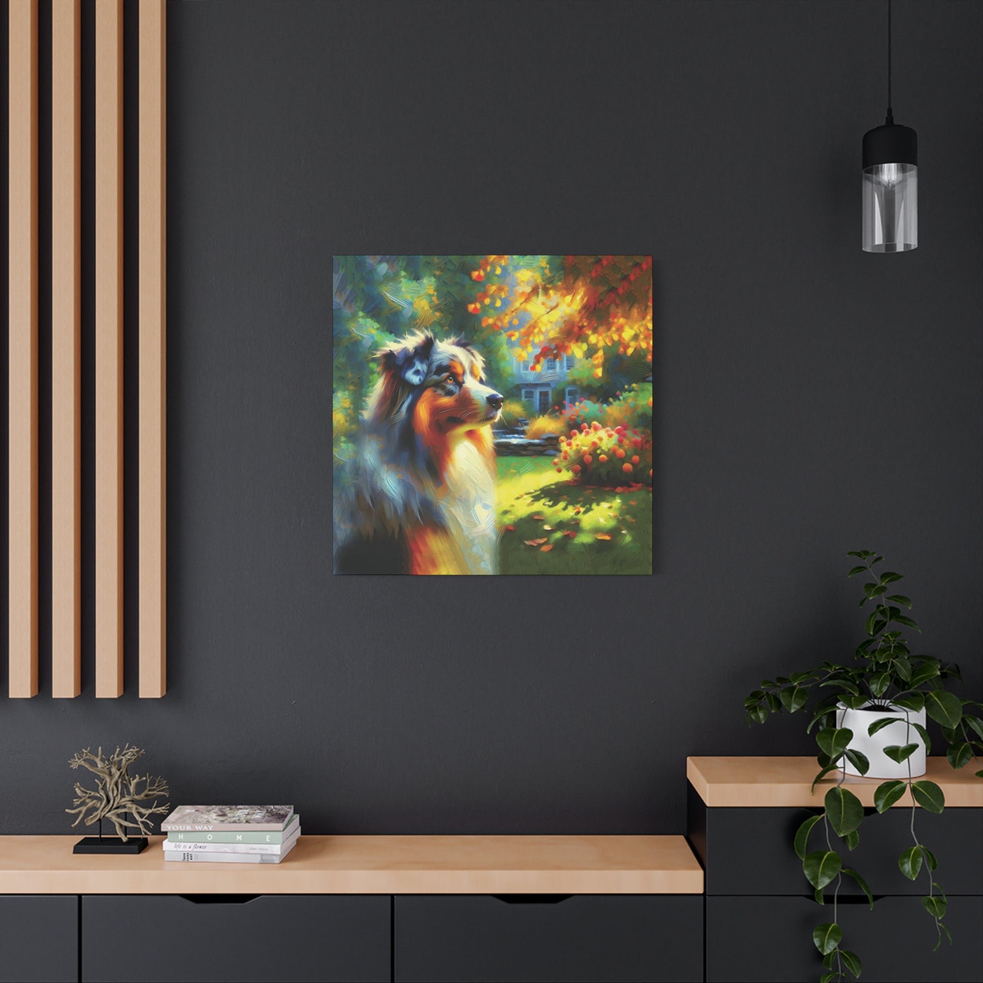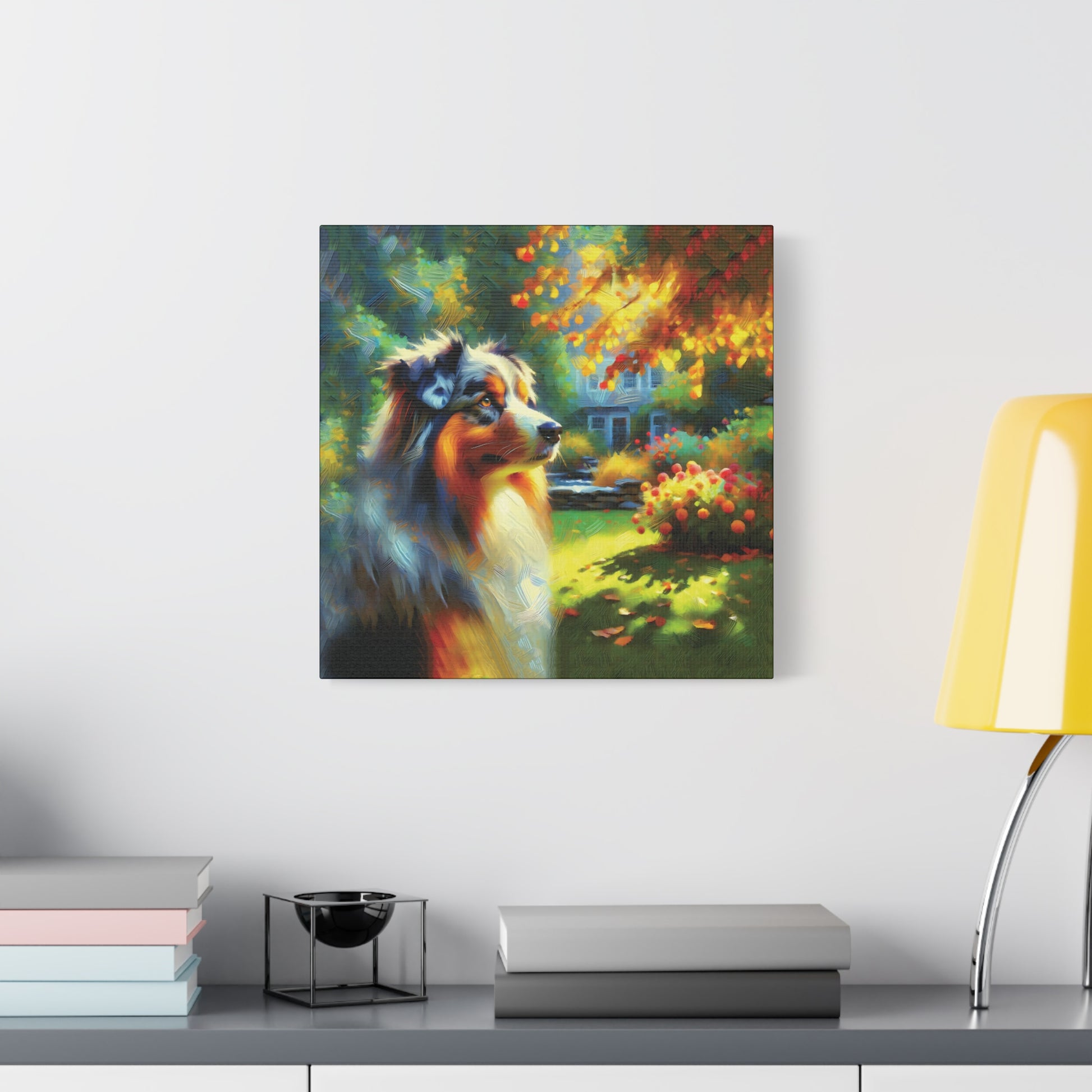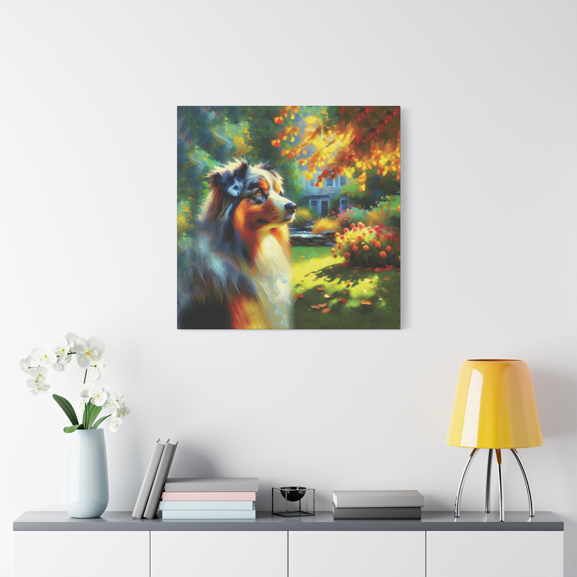 Is he fascinated by the changing colors, or is he watching a bird or maybe a squirrel? Whatever has his attention, he's got ours! Such a pretty Australian Shepherd!