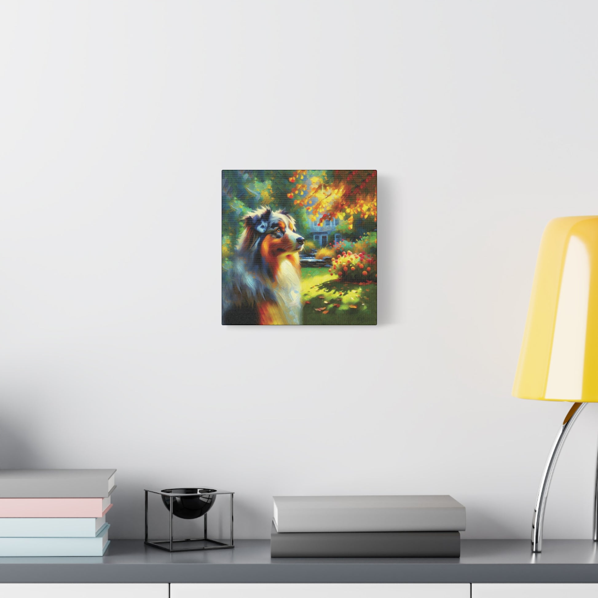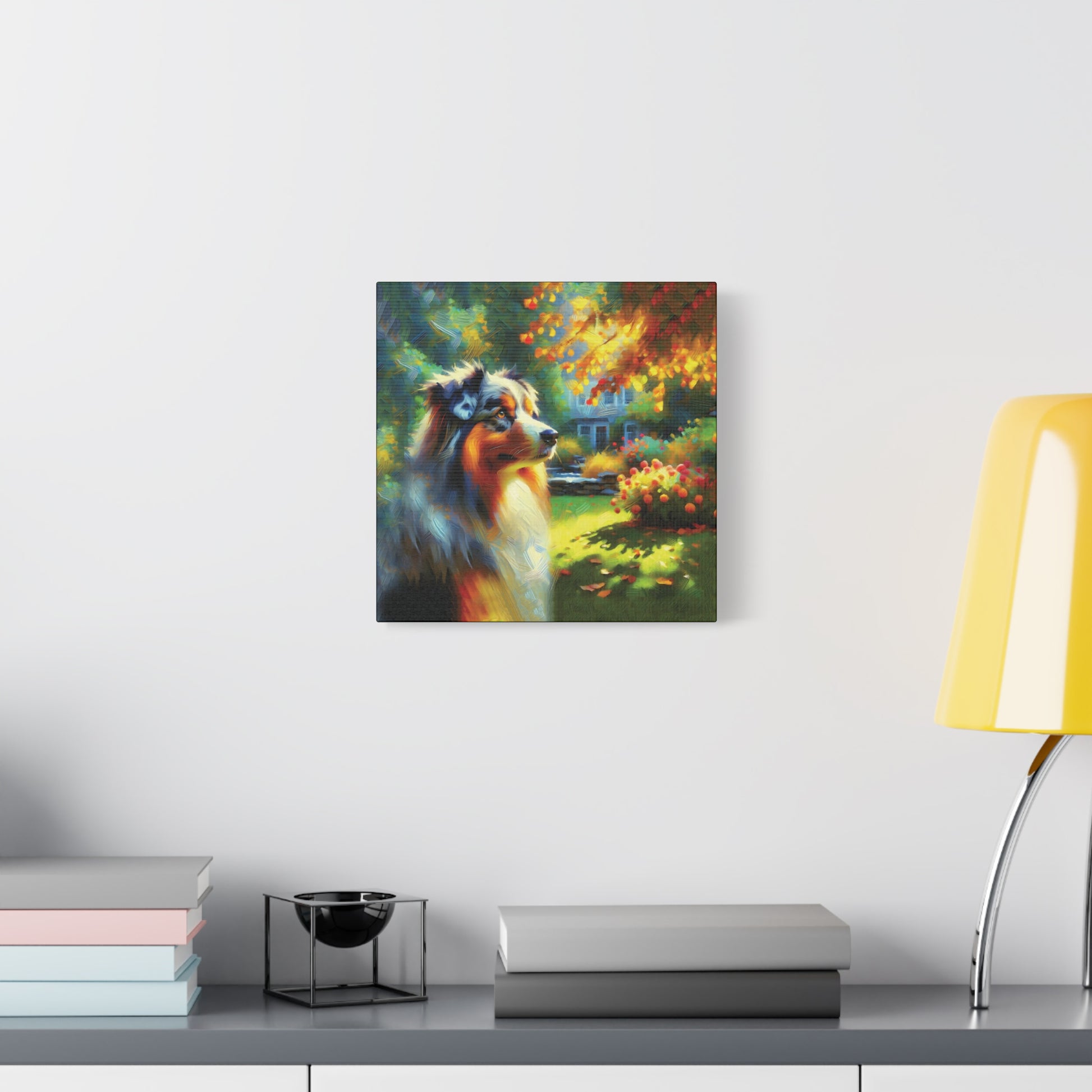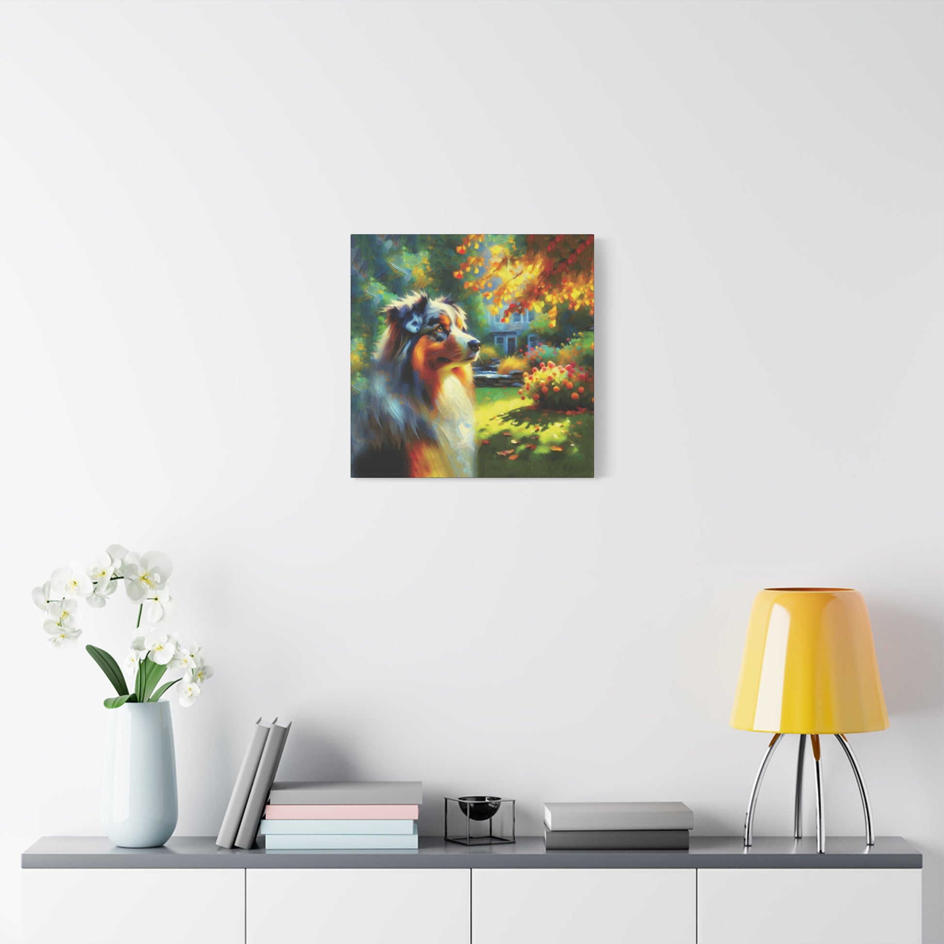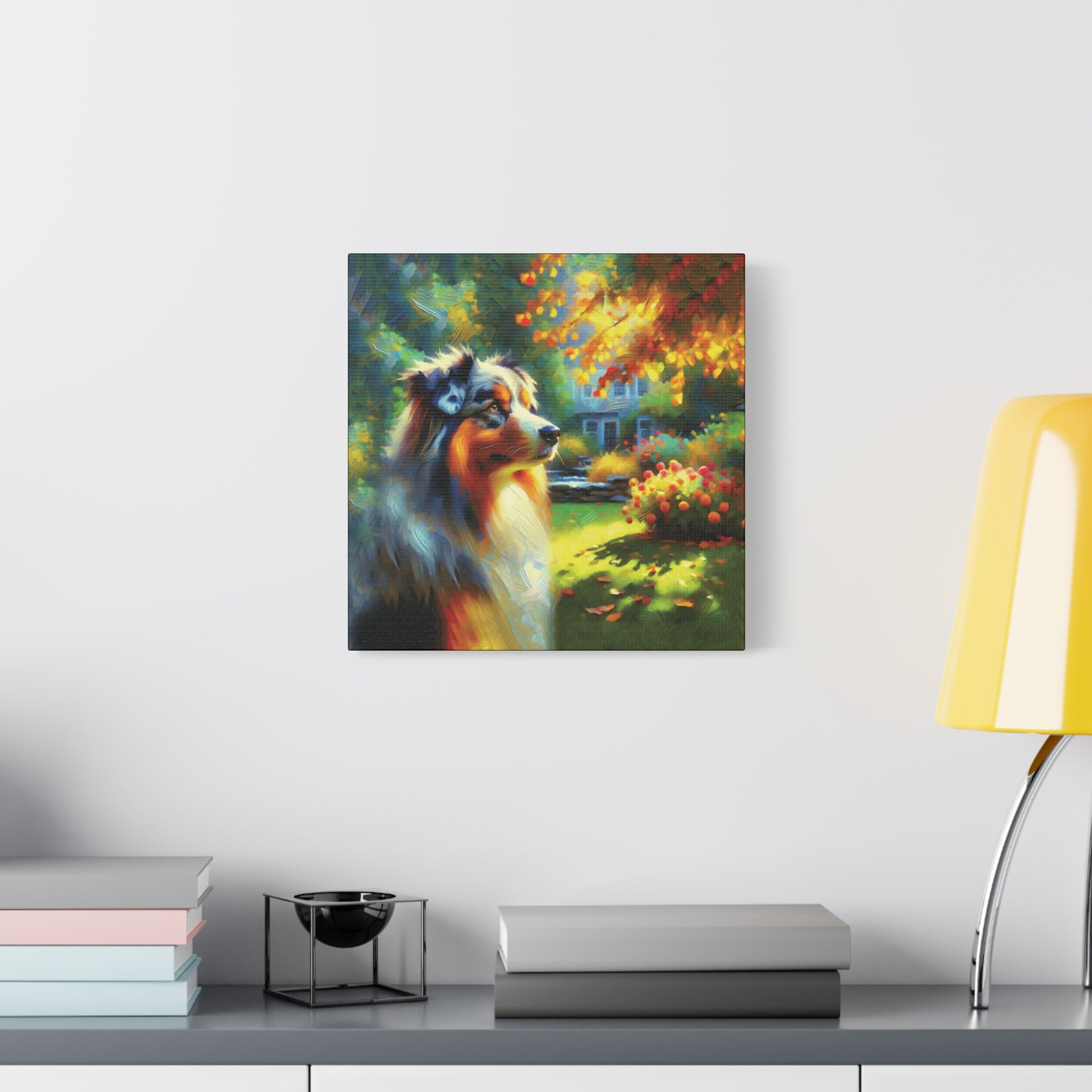 Is he fascinated by the changing colors, or is he watching a bird or maybe a squirrel? Whatever has his attention, he's got ours! Such a pretty Australian Shepherd!