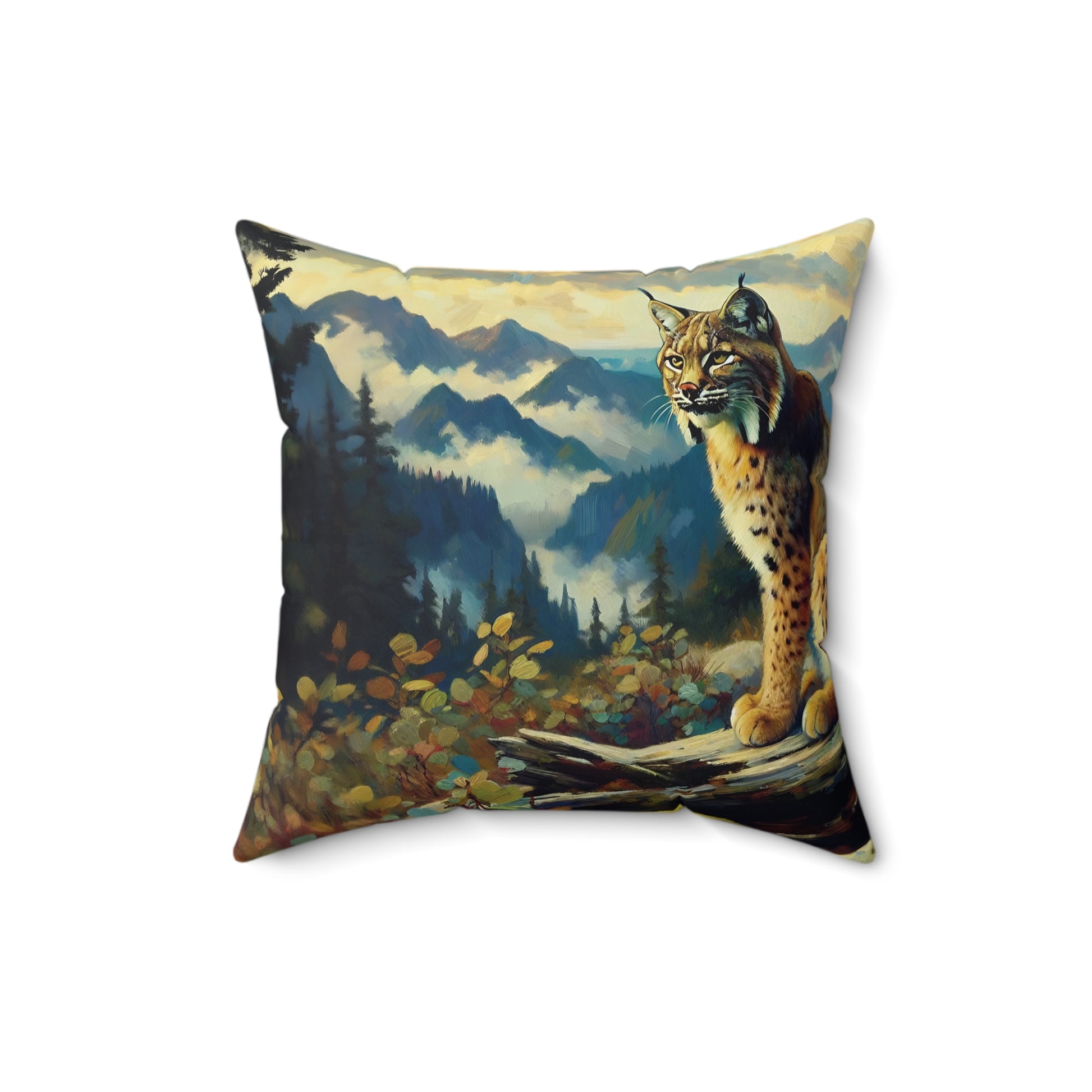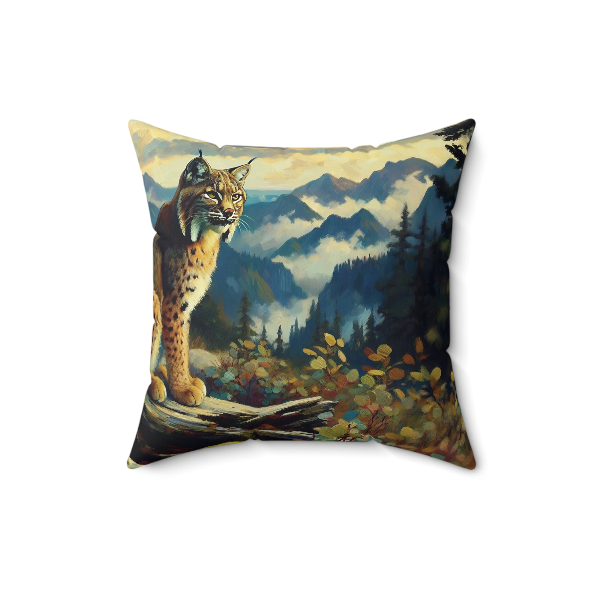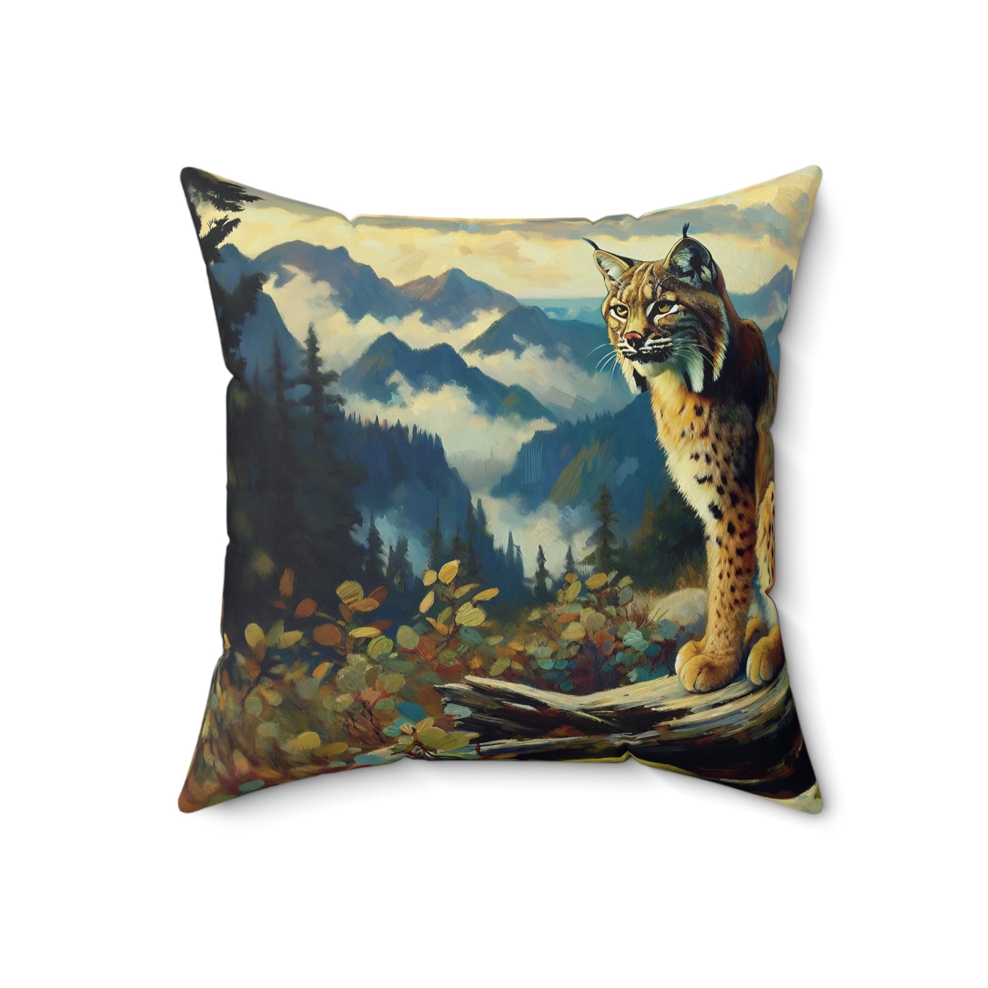 Bobcat in Olympic Mountains Faux Suede Throw Pillow in Impressionist Style Art