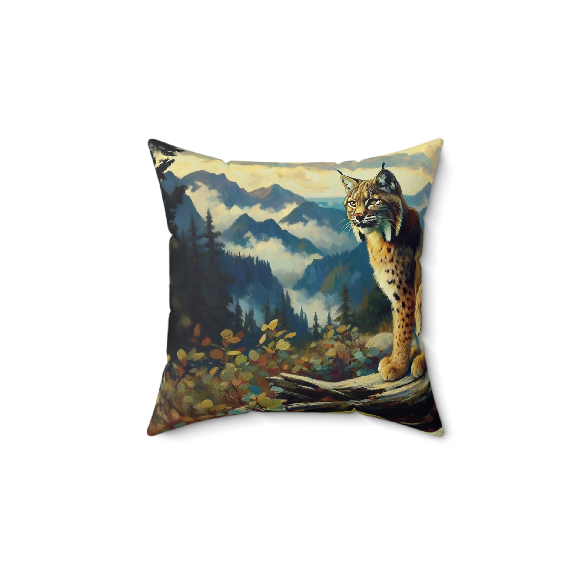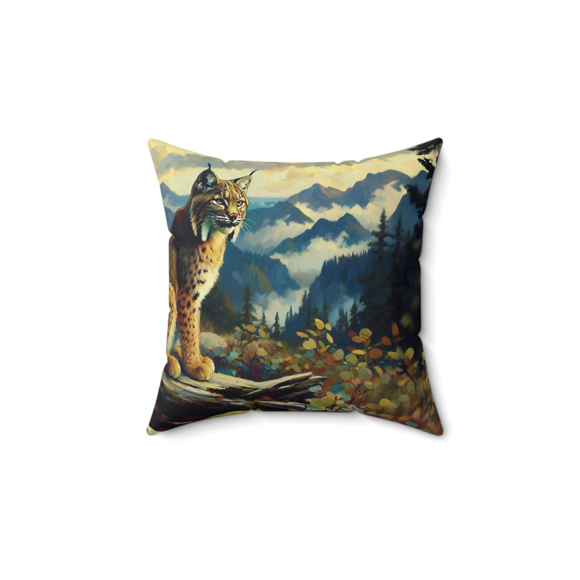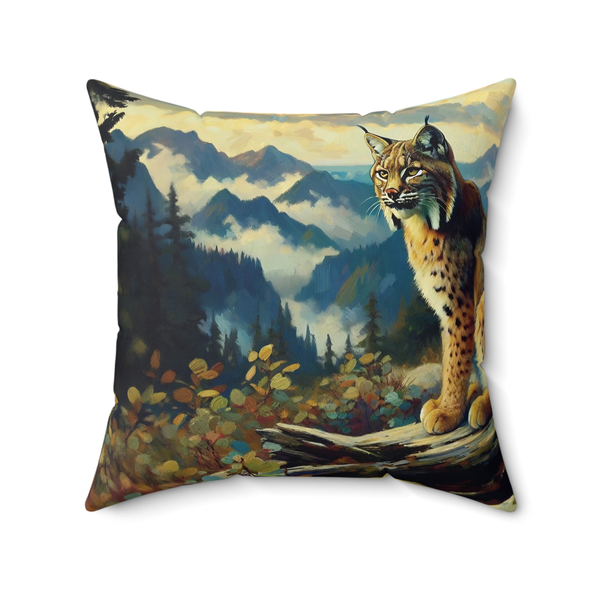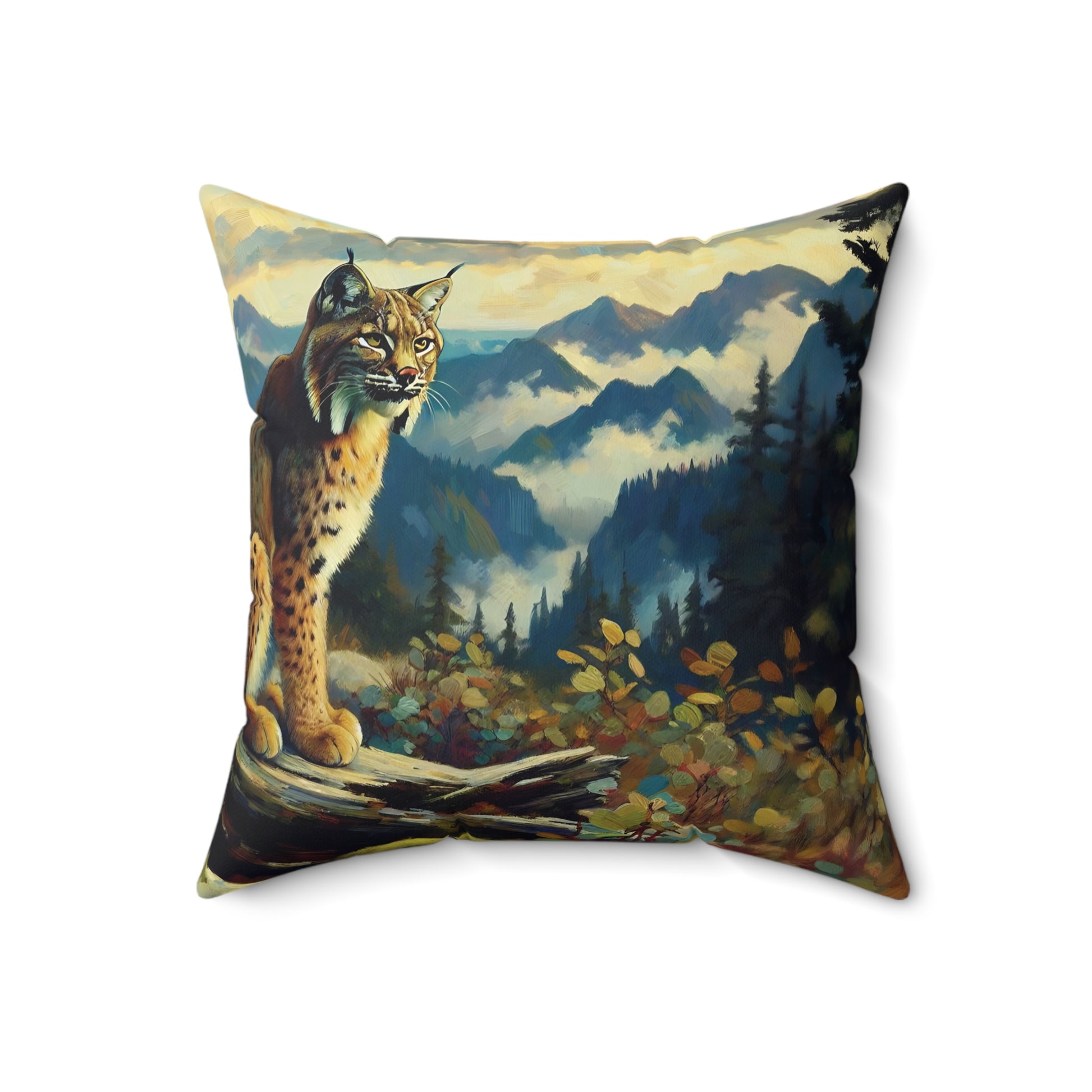 Bobcat in Olympic Mountains Faux Suede Throw Pillow in Impressionist Style Art