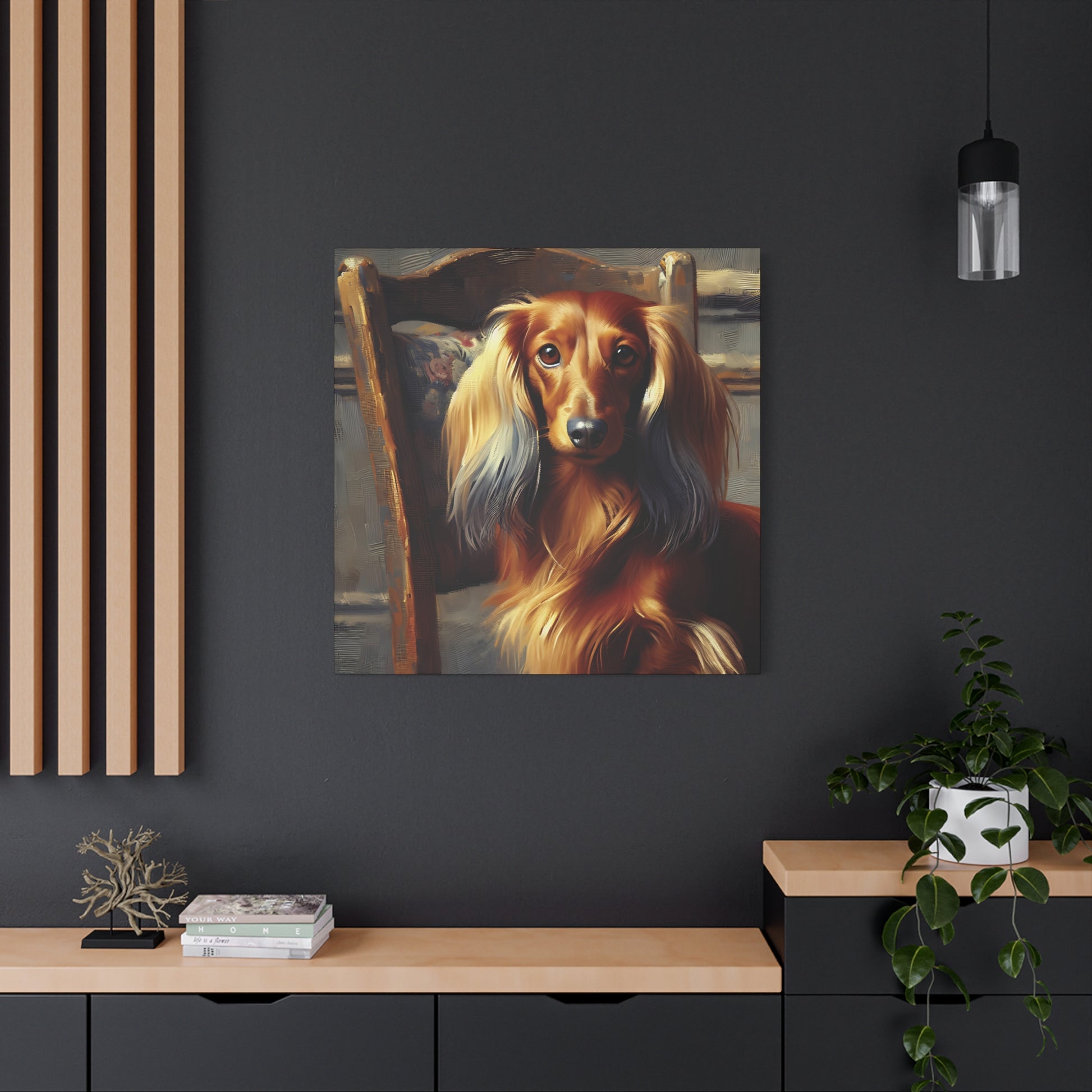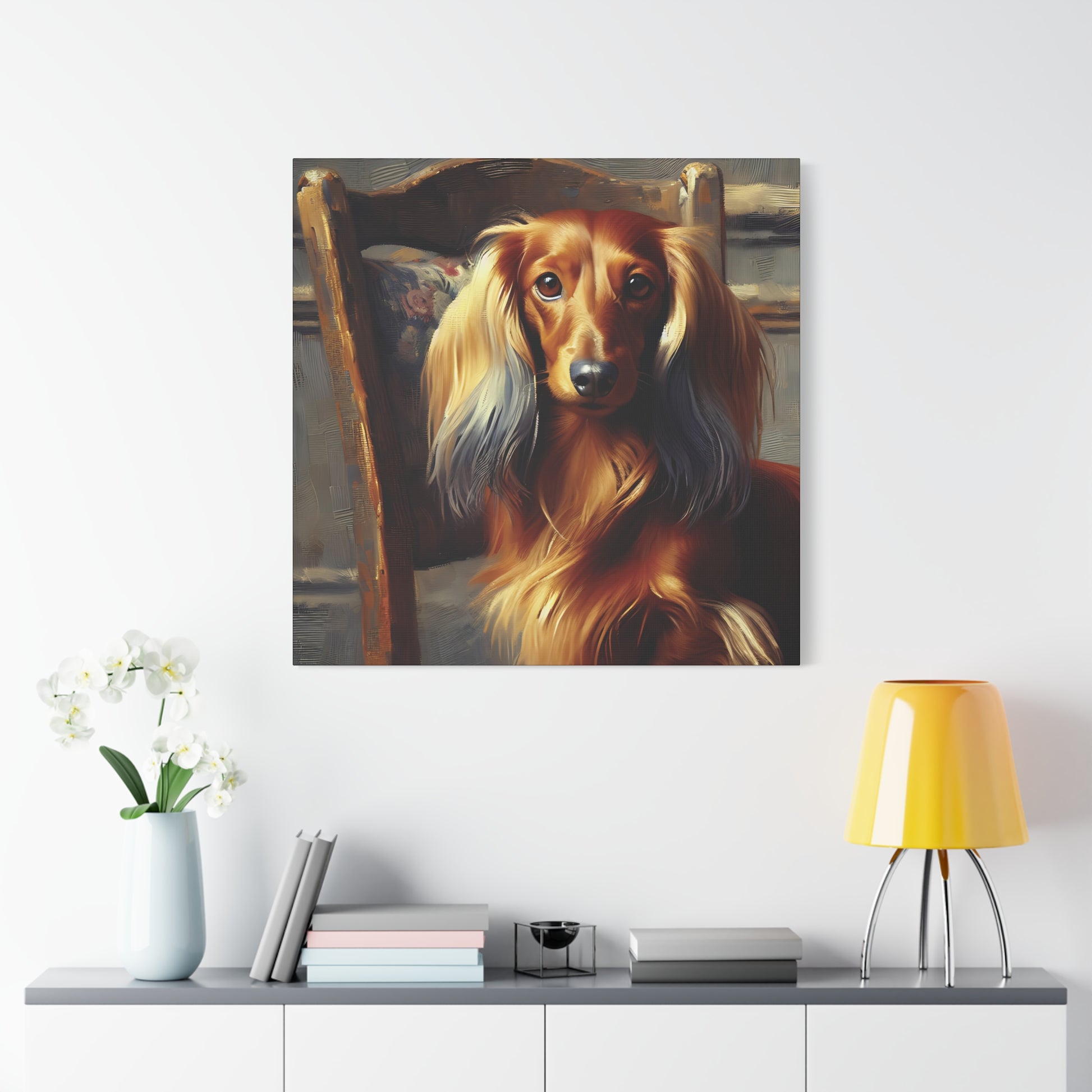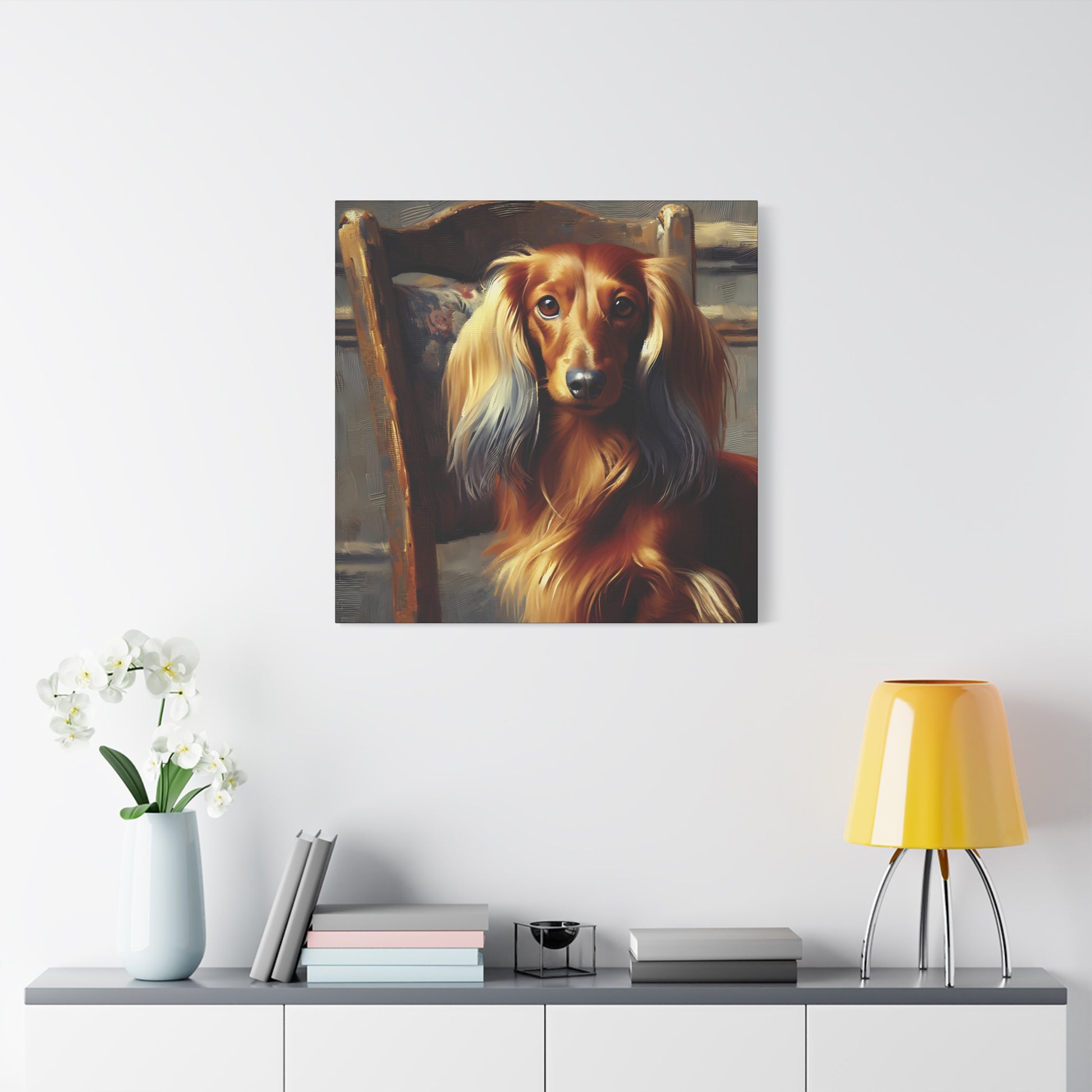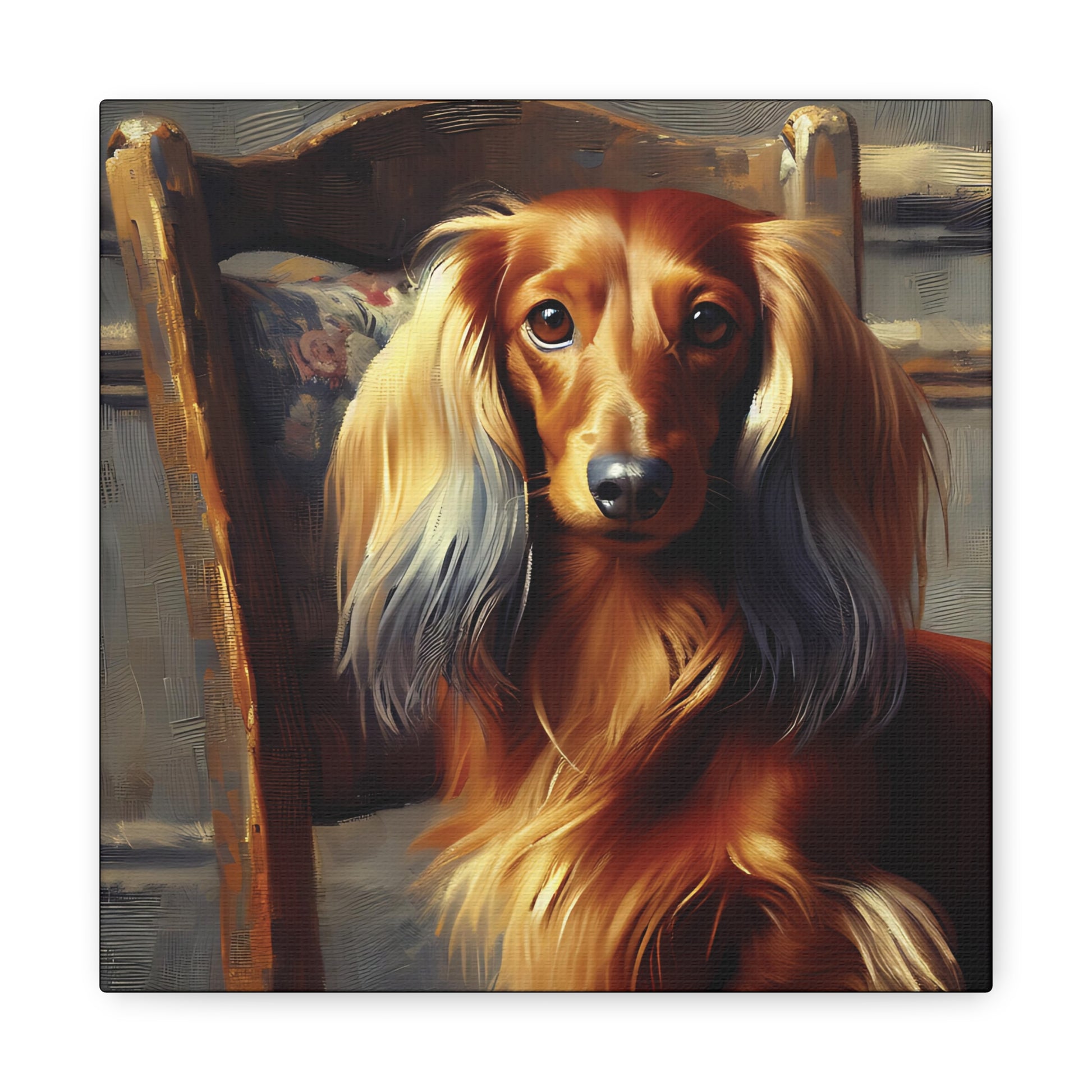 Canvas Wall Art - Longhair Dachshund on Wooden Chair