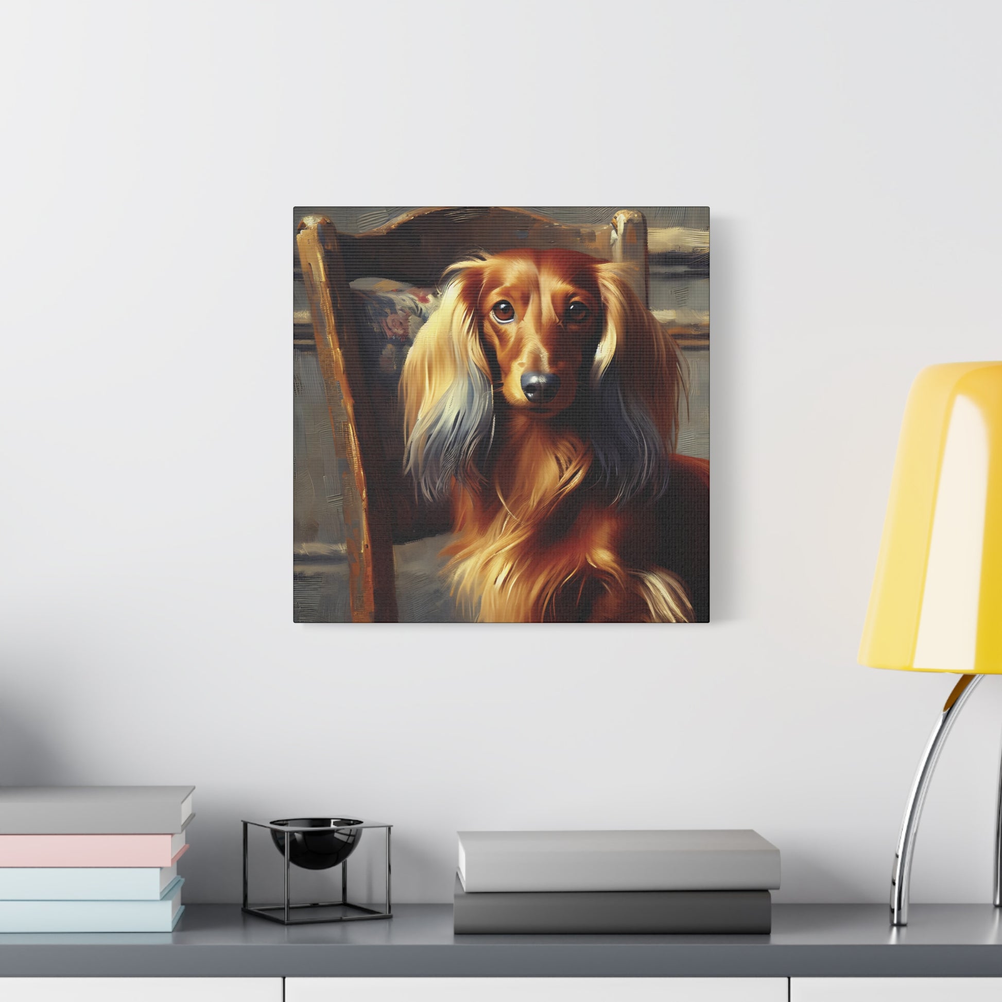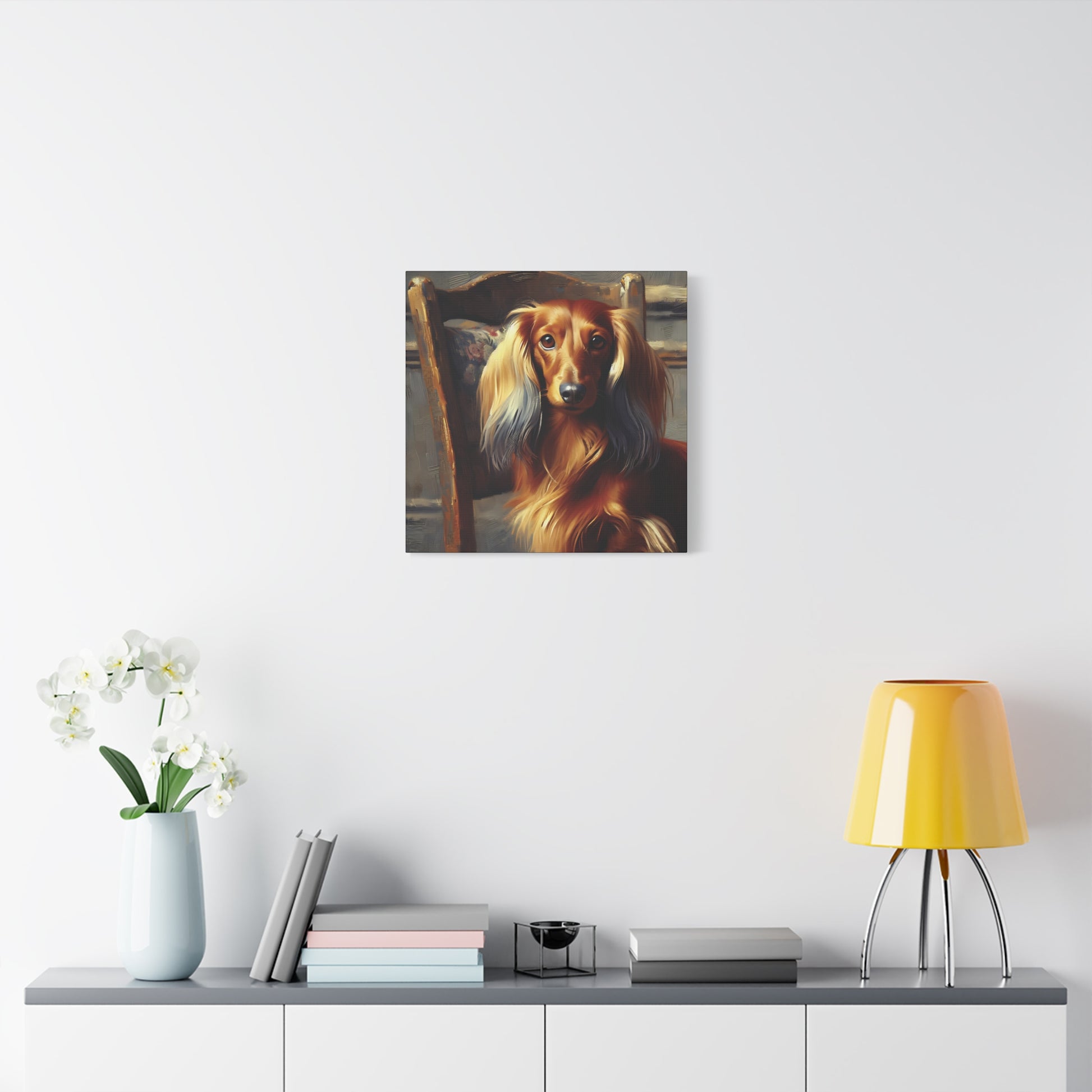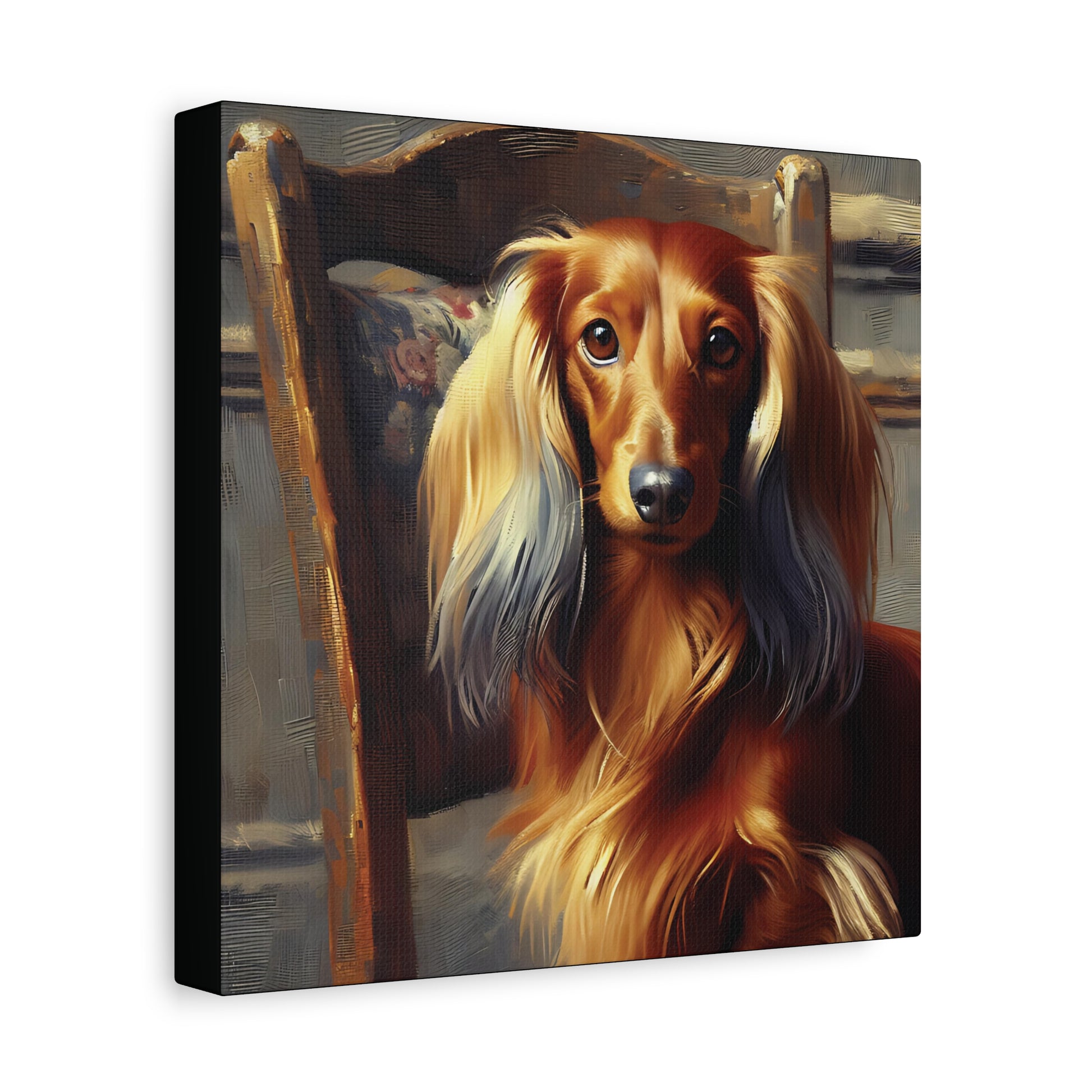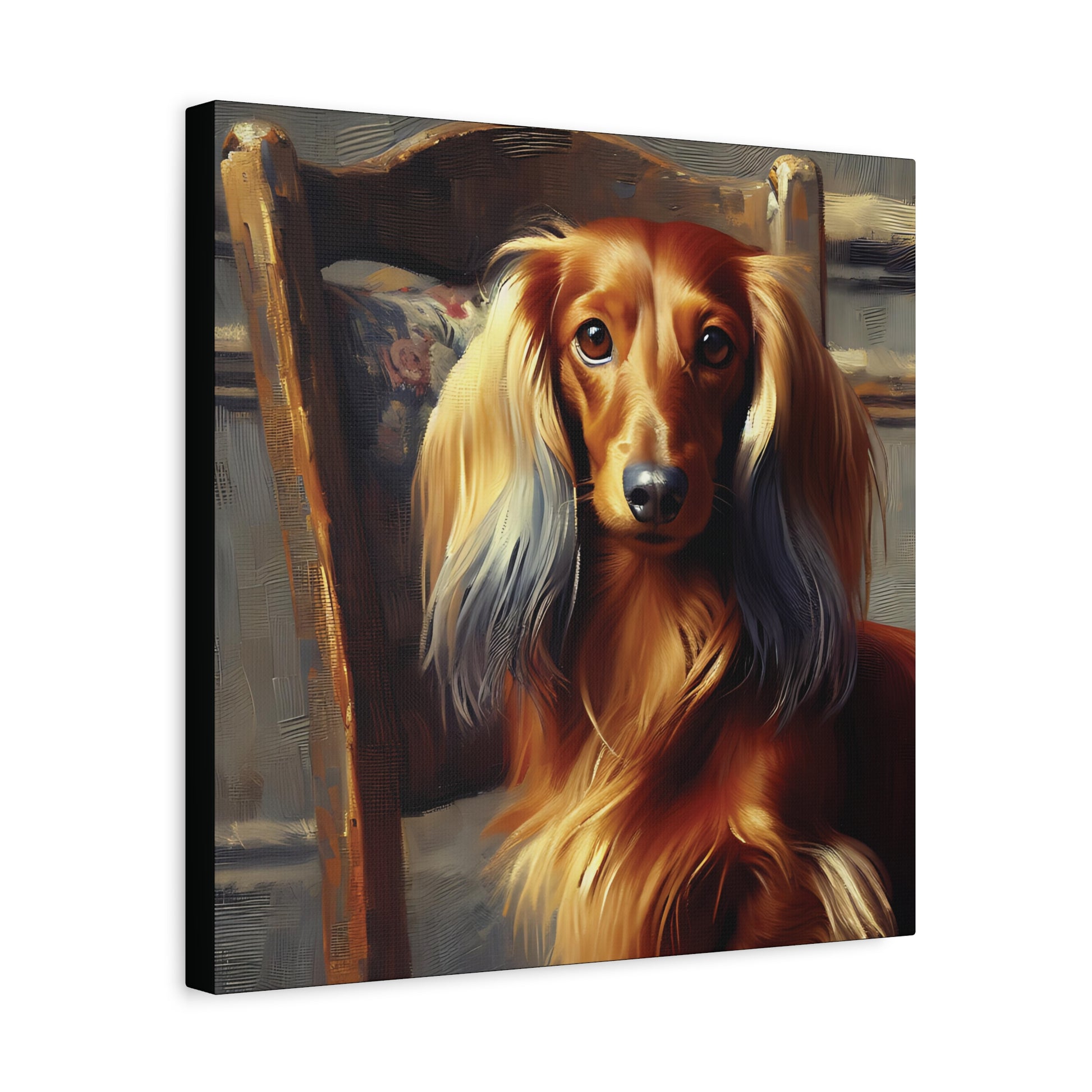 Canvas Wall Art - Longhair Dachshund on Wooden Chair
