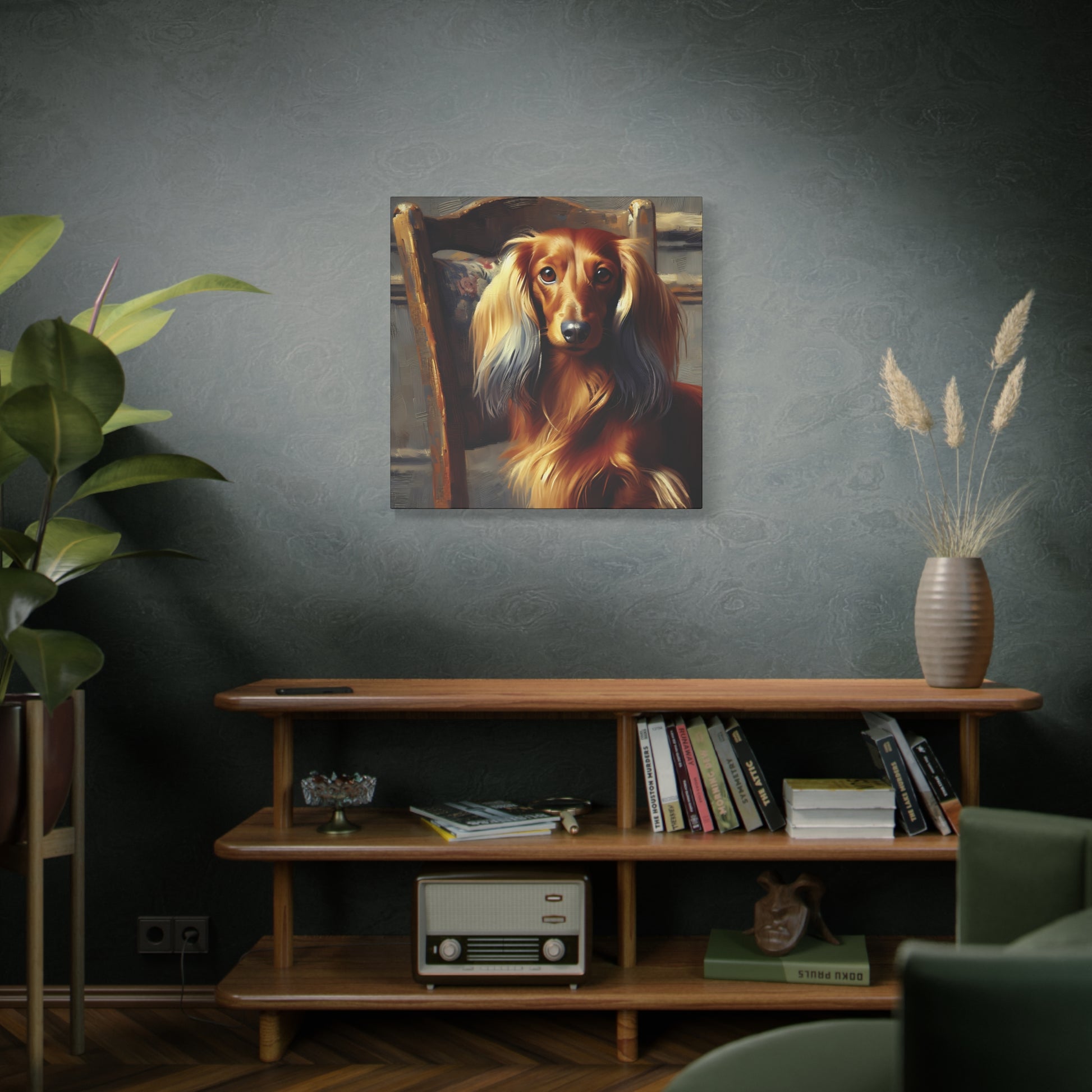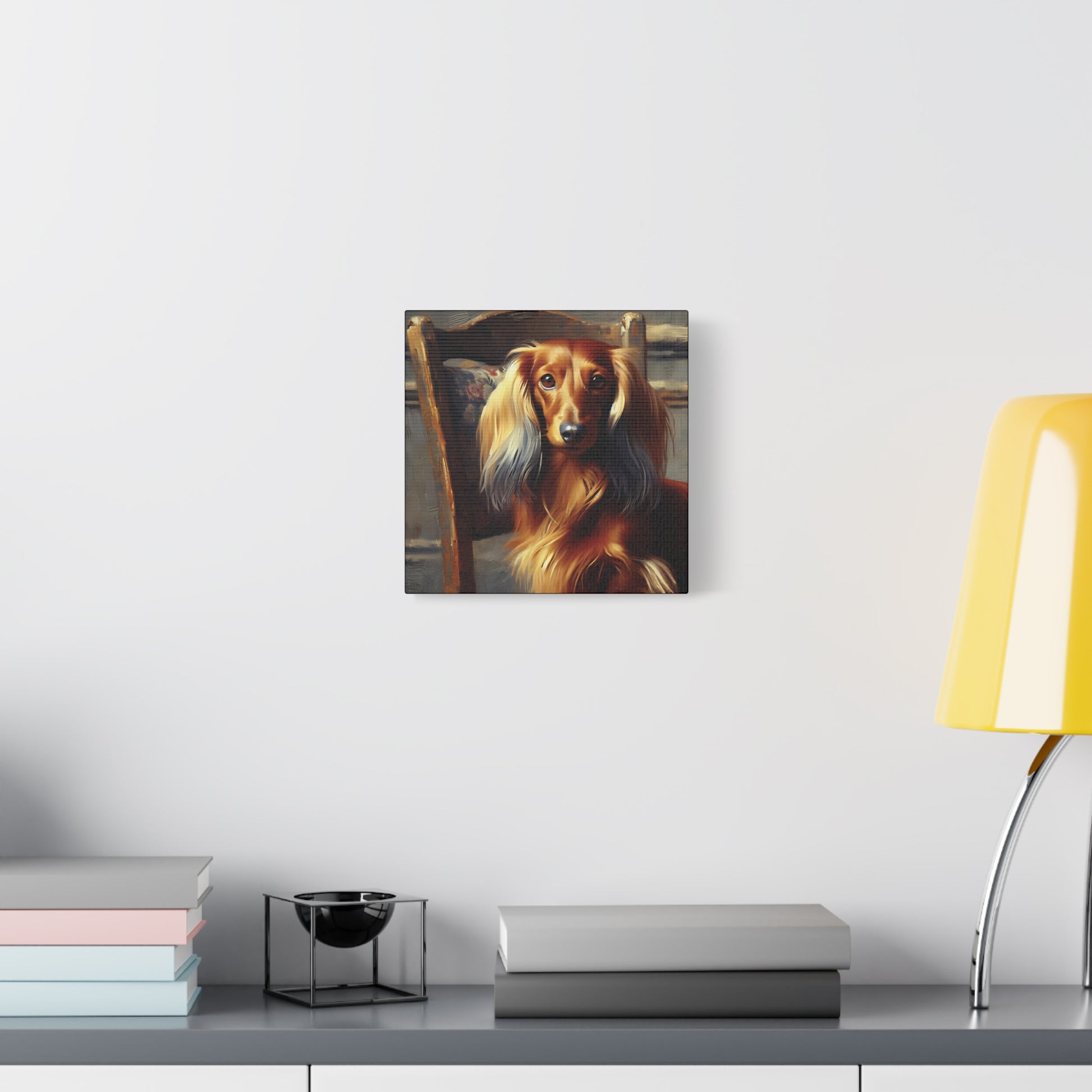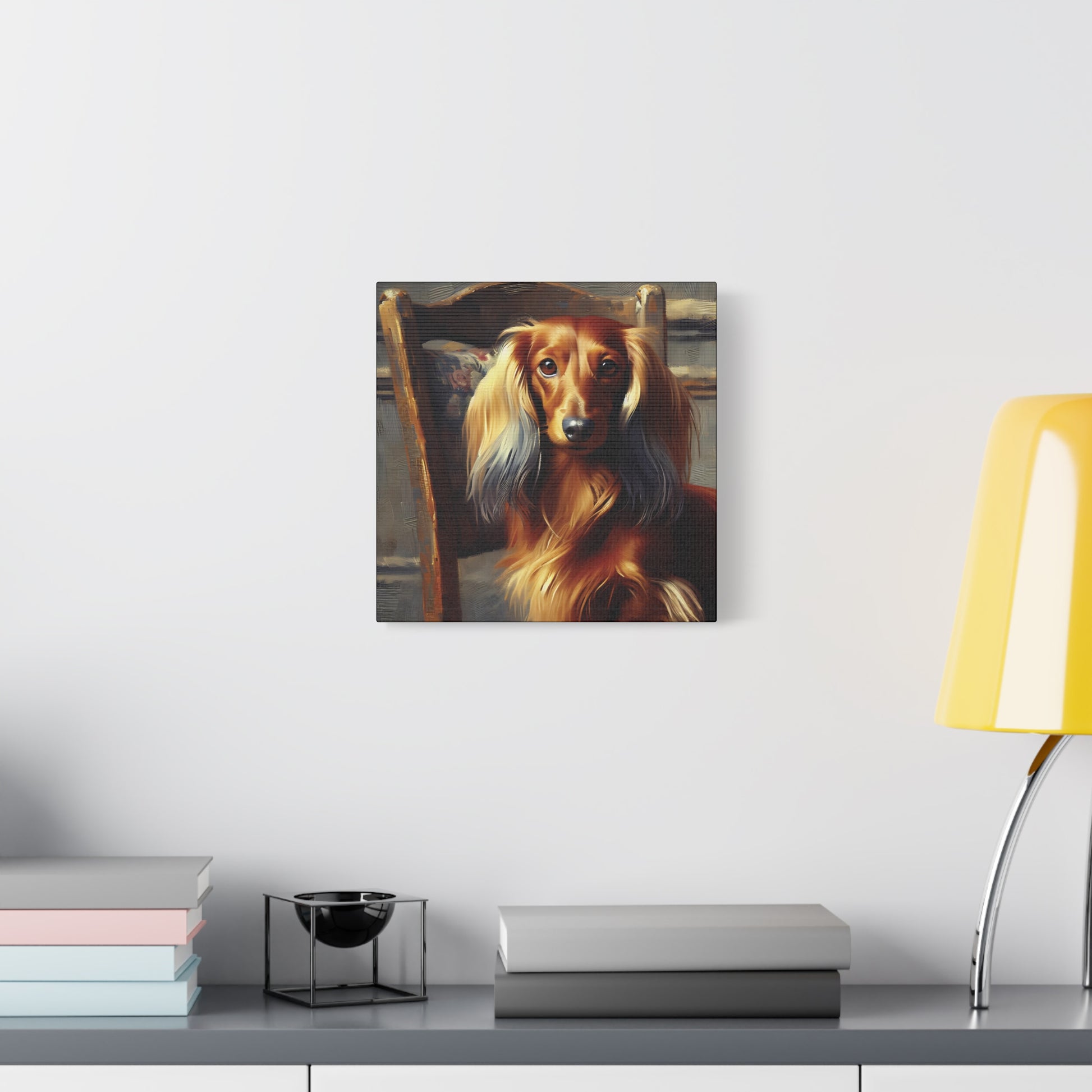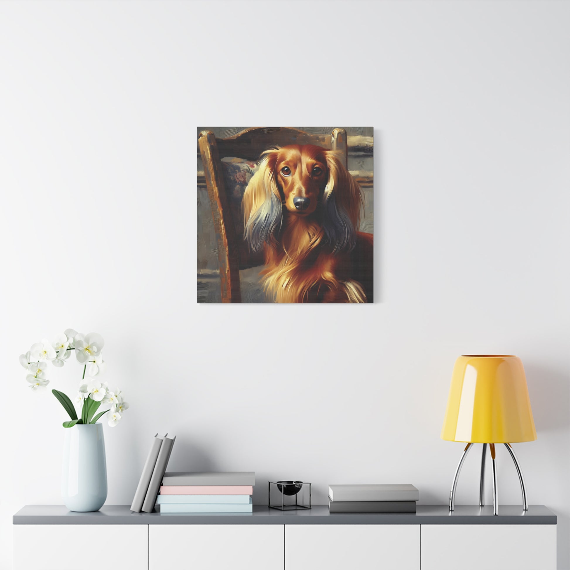 Canvas Wall Art - Longhair Dachshund on Wooden Chair