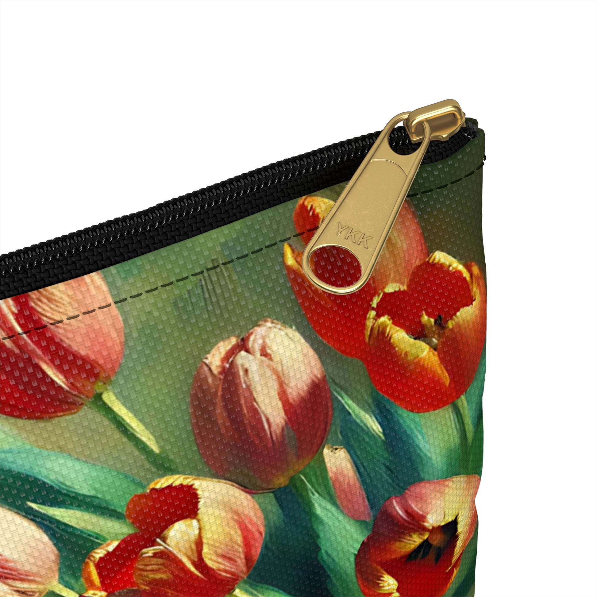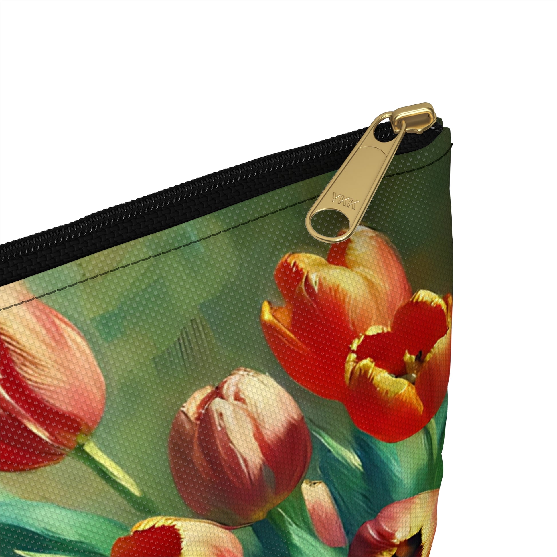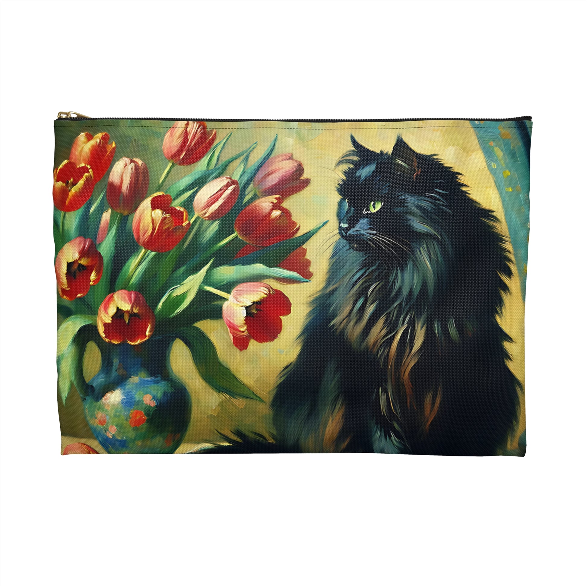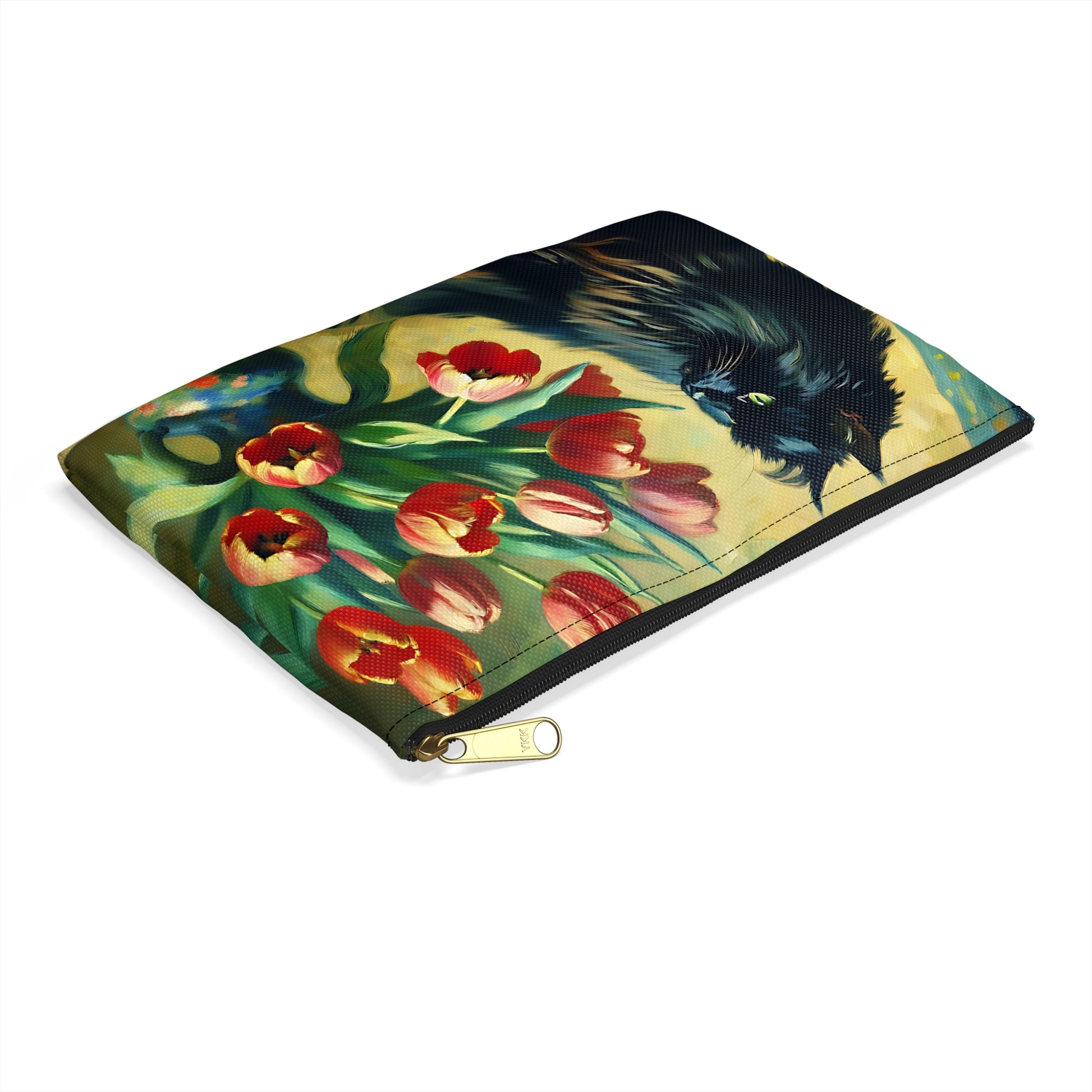 Cat Lover's Accessory Pouch, Artists Black Cat with Red Tulips, Cute Cat Makeup Bag, Pet-Themed Gift, Floral Storage Bag, Cat Mom Essential