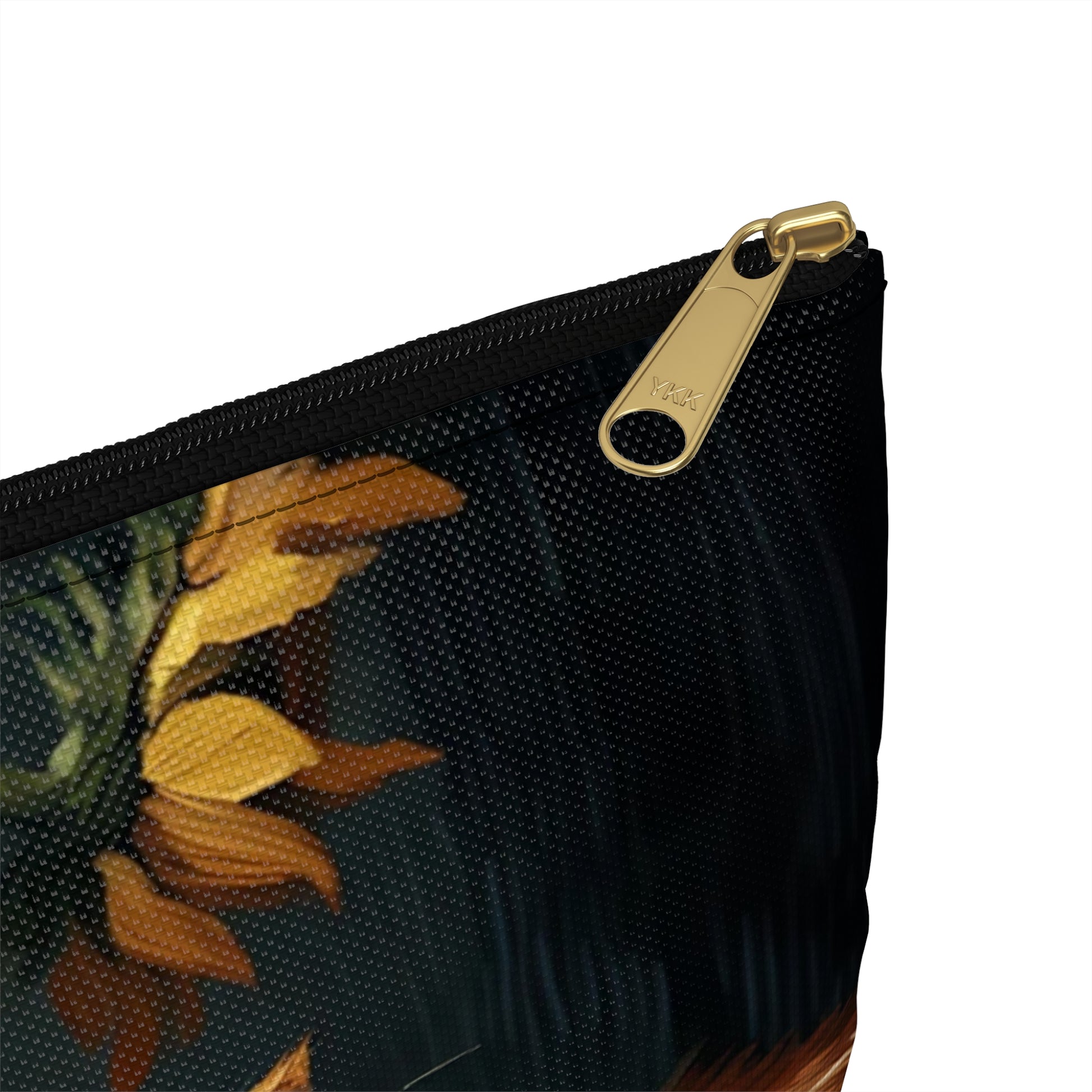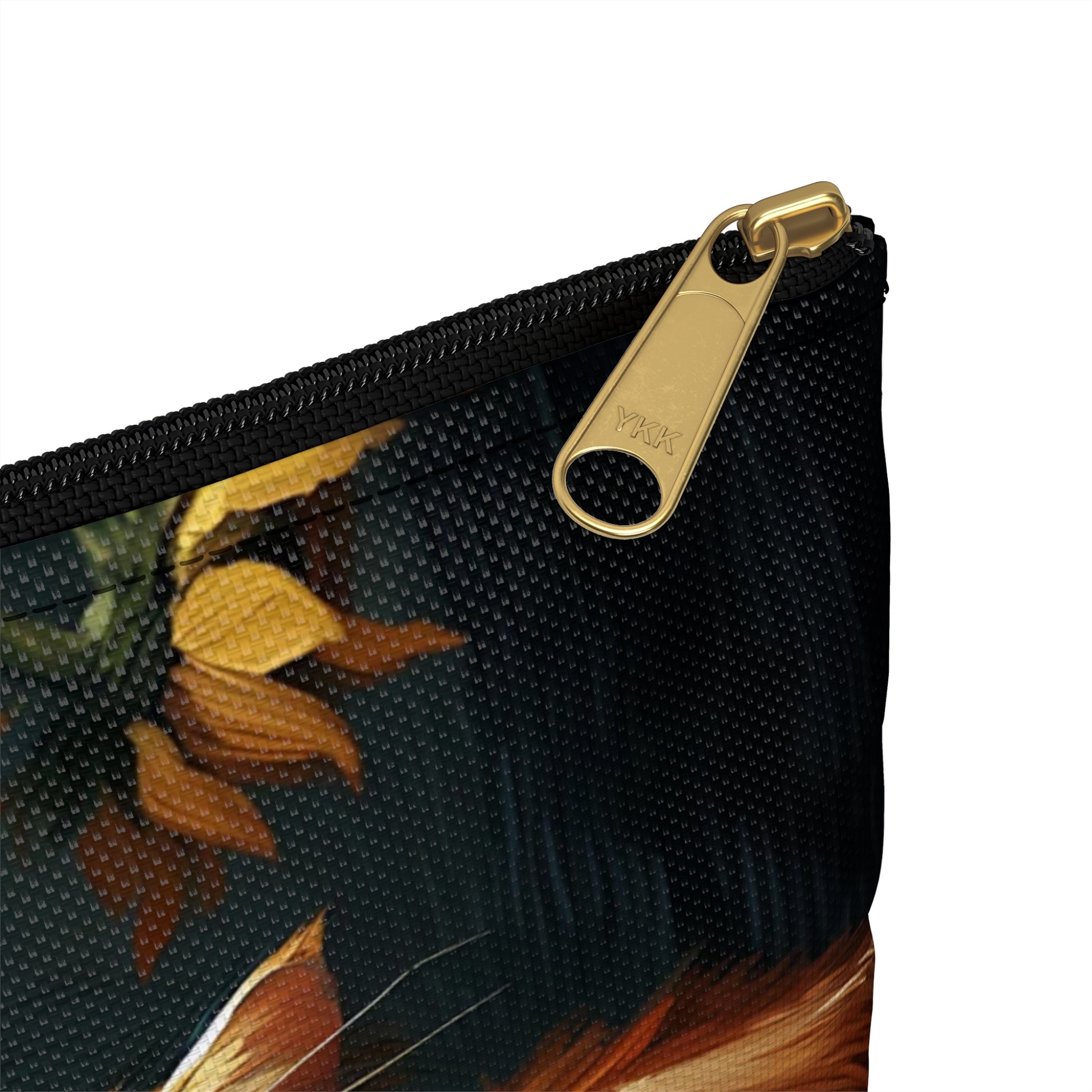 Cat Lover's Accessory Pouch, Orange and White Cat with Sunflowers, Cute Cat Makeup Bag, Pet-Themed Gift, Floral Storage Bag, Cat Mom Essential