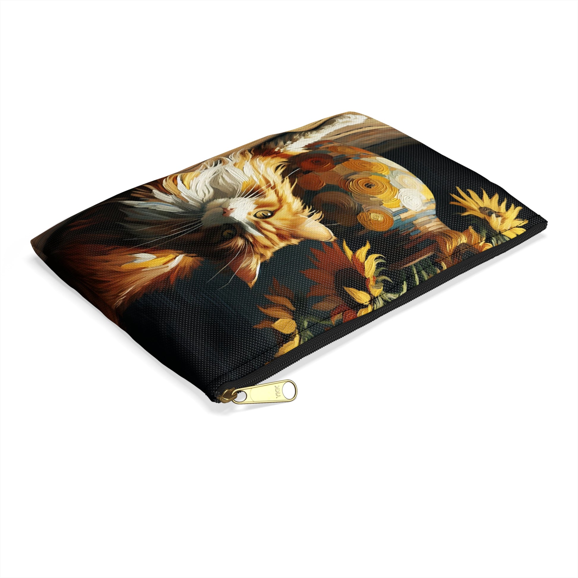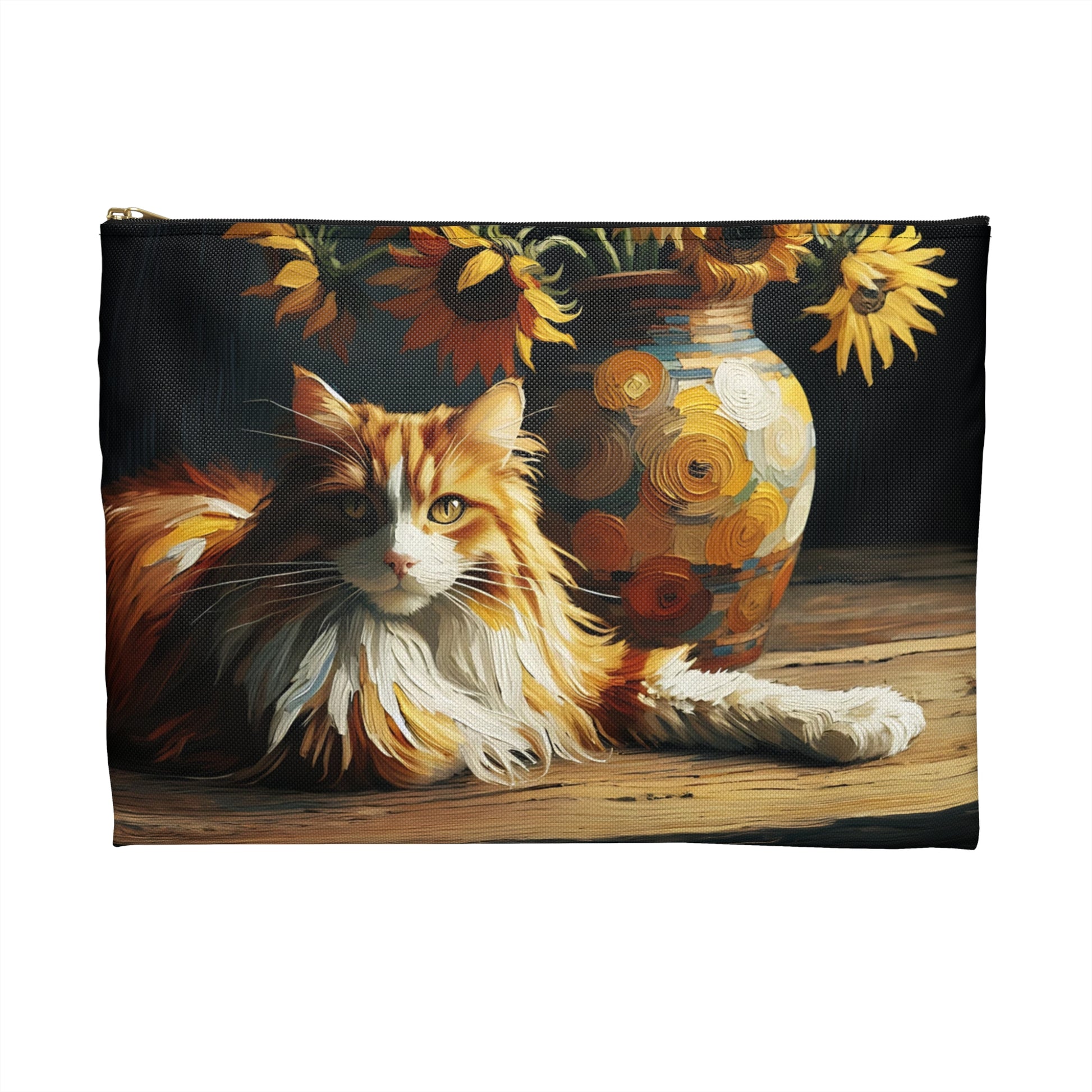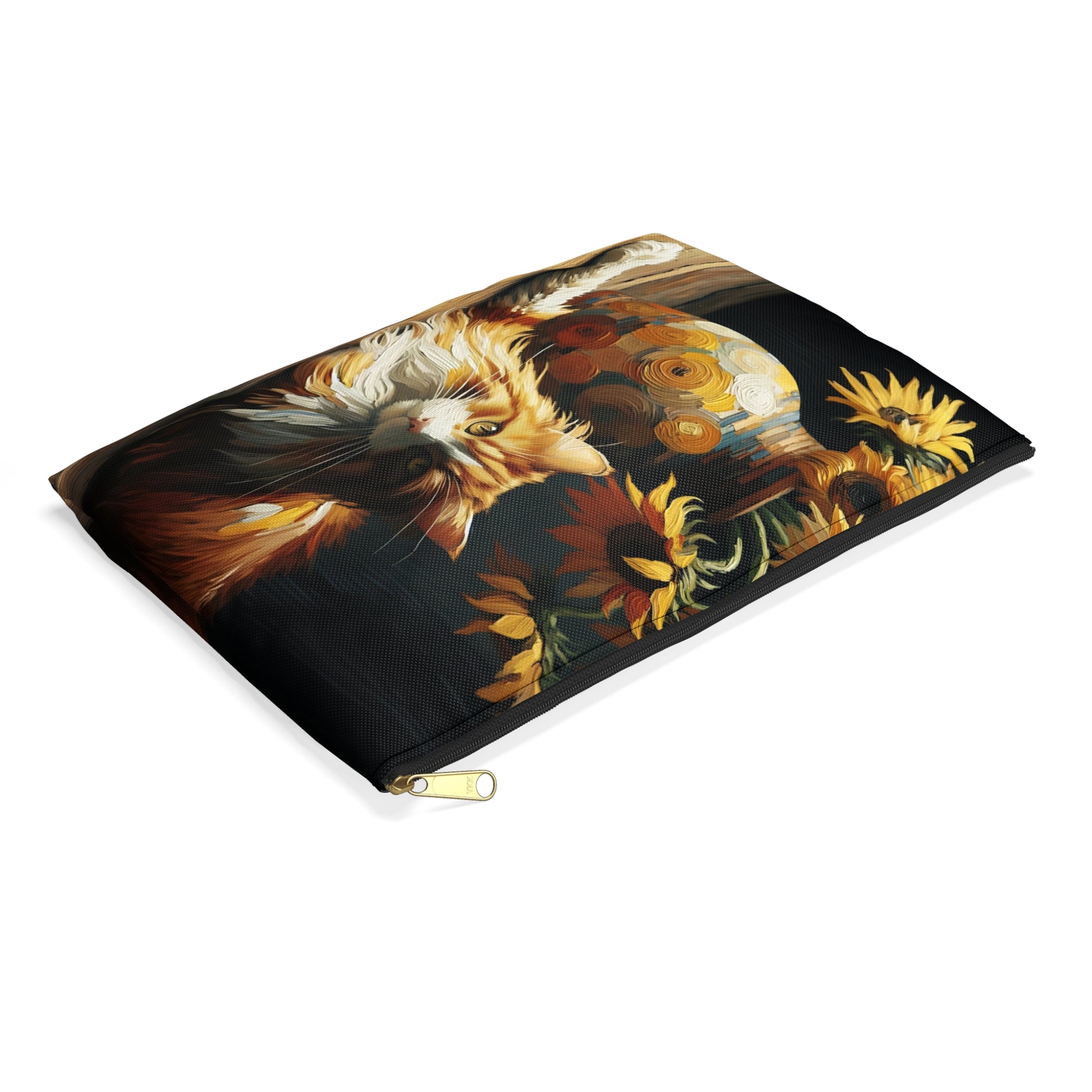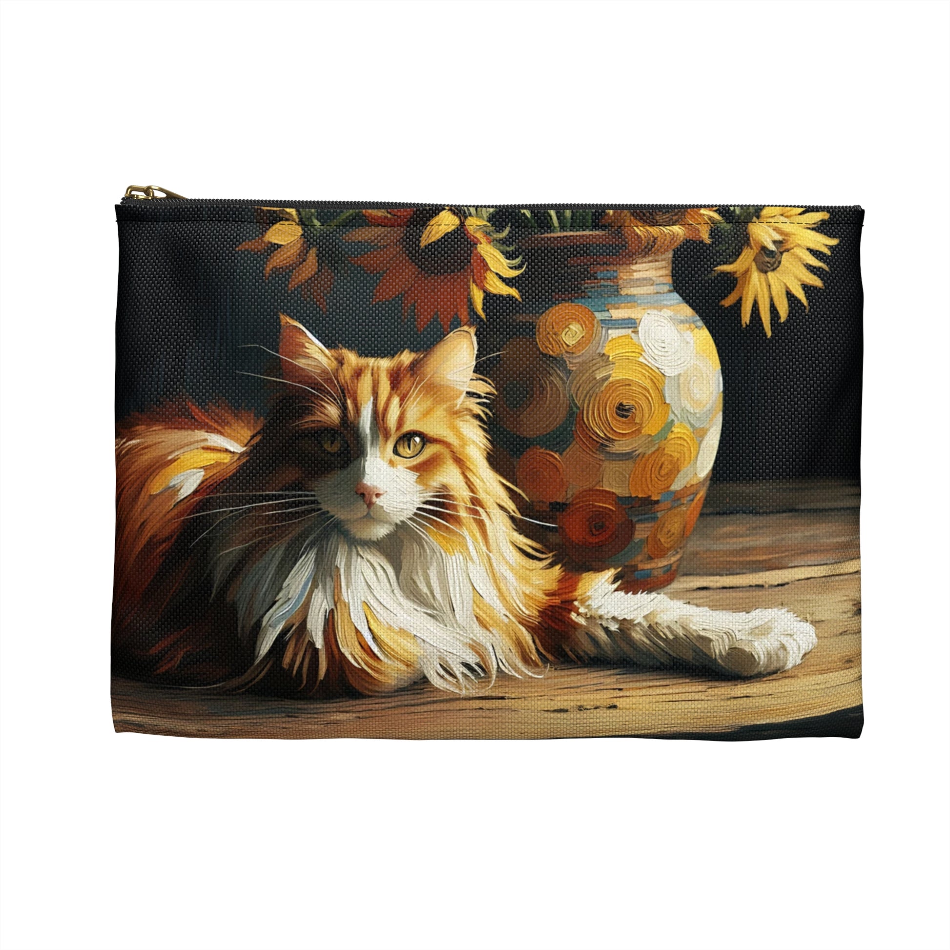 This vibrant accessory pouch is perfect for adding a splash of color to your daily routine. With its stunning artwork featuring a charming cat and beautiful sunflowers, it embodies a cozy, artistic vibe that appeals to cat lovers and art enthusiasts alike. Ideal for organizing makeup, stationery, or everyday essentials, this pouch makes a delightful gift for birthdays, holiday celebrations, or simply as a treat for yourself. Its unique design adds flair to any bag and is perfect for anyone looking to express their personality through functional accessories.