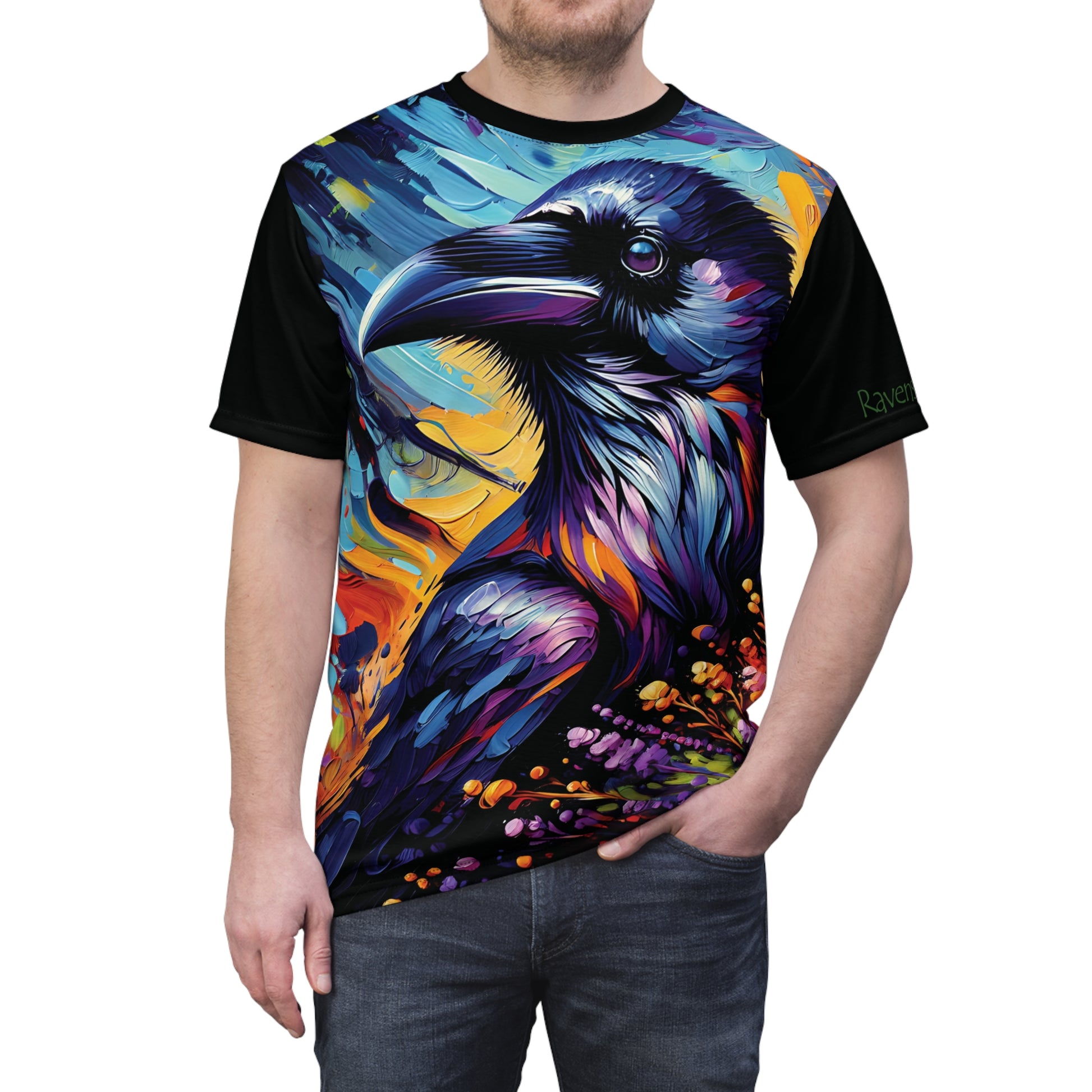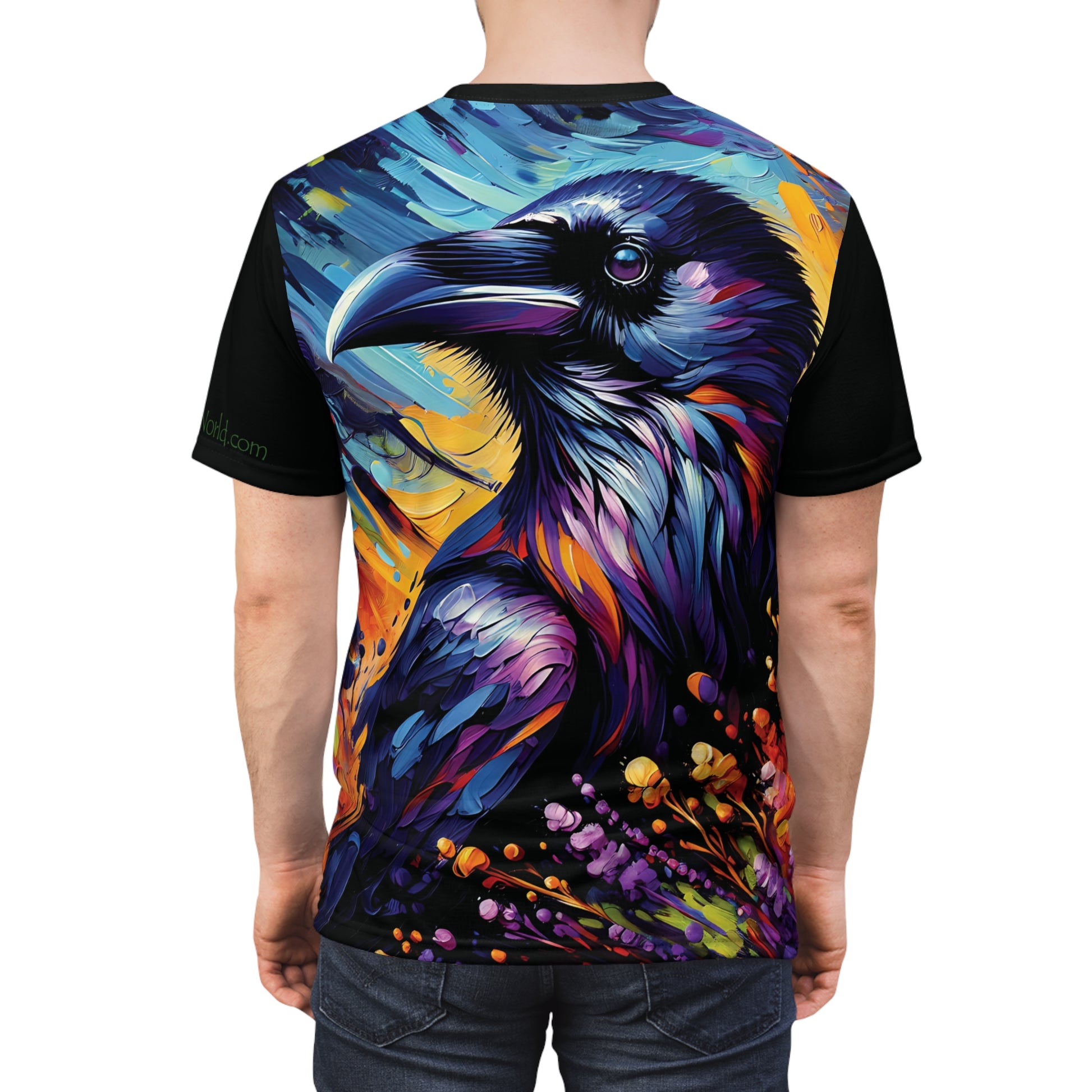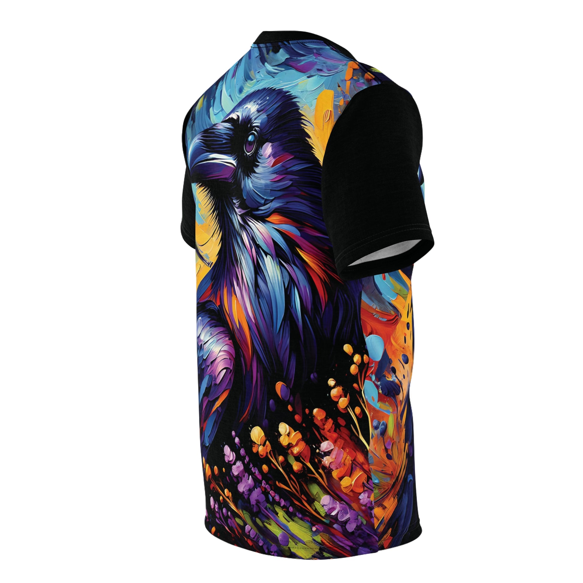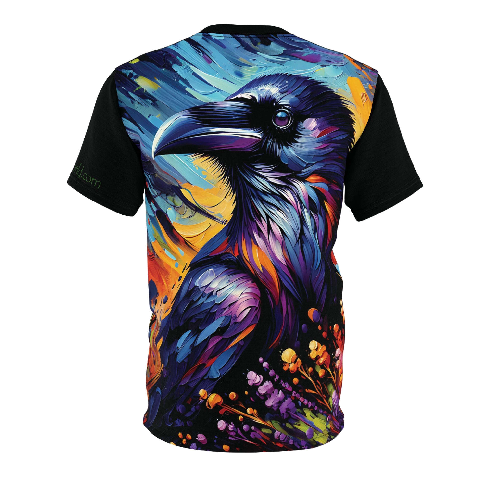 Colorful Raven Portrait Vibrant Art Tee | Colorful Unisex Cut & Sew T-Shirt, Wildlife Apparel, Unique Graphic Tee, Birthday Gift