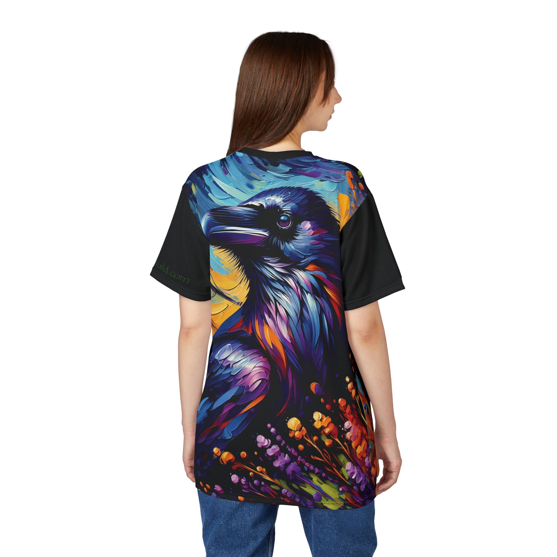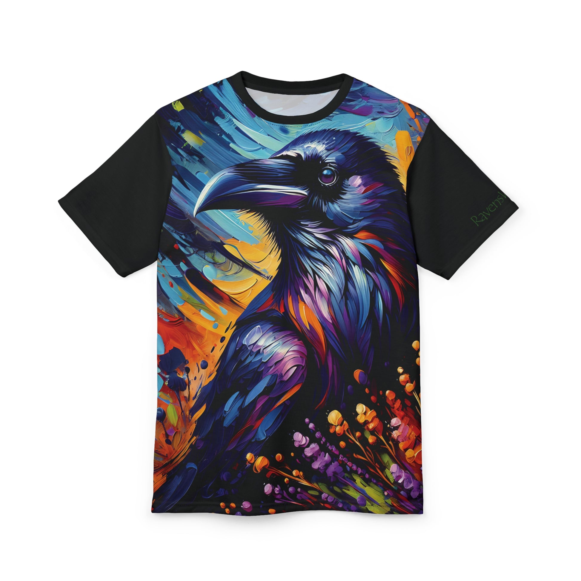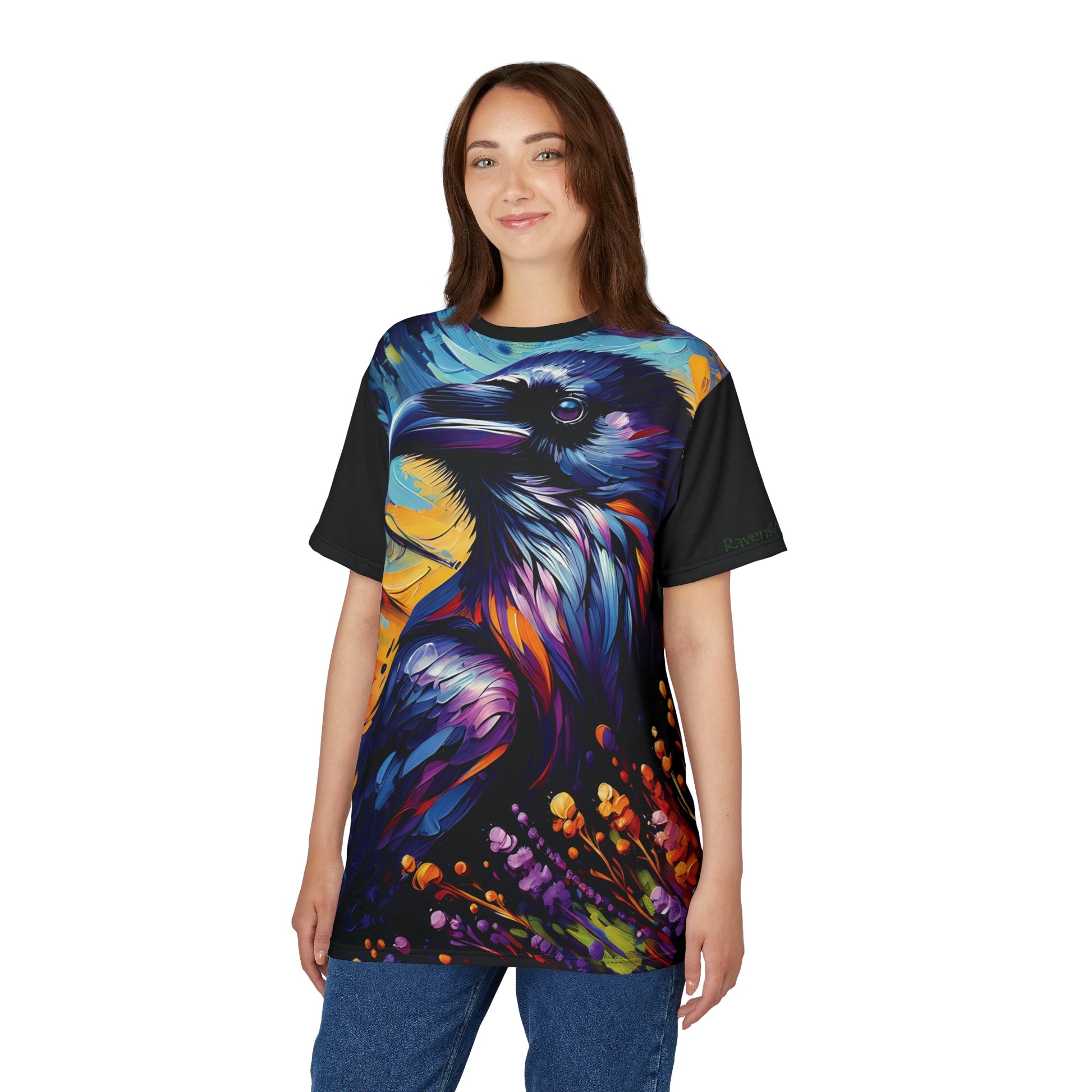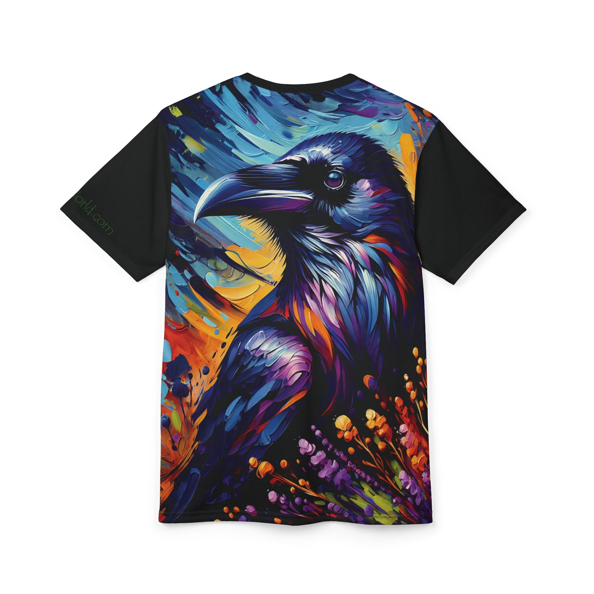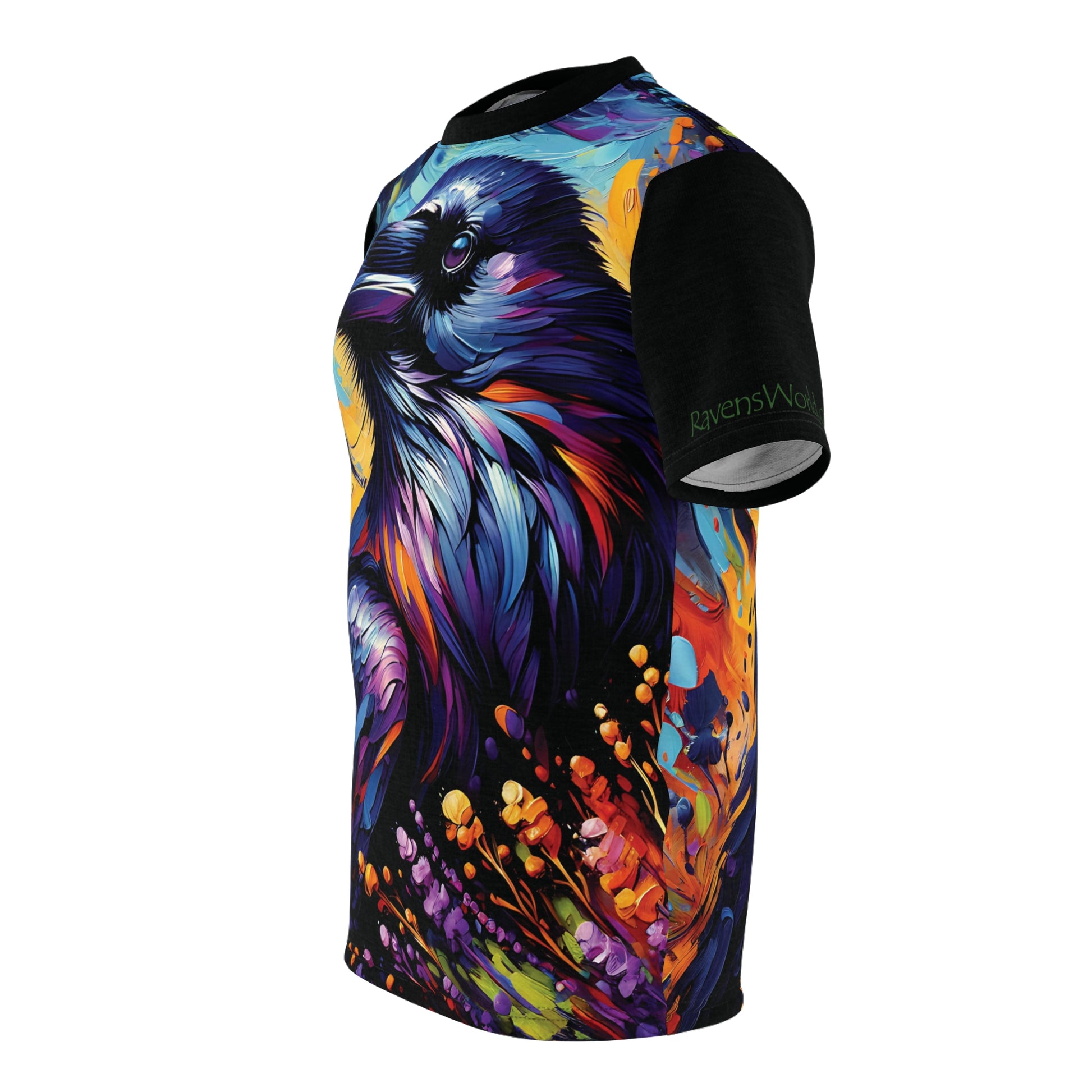 Colorful Raven Portrait Vibrant Art Tee | Colorful Unisex Cut & Sew T-Shirt, Wildlife Apparel, Unique Graphic Tee, Birthday Gift