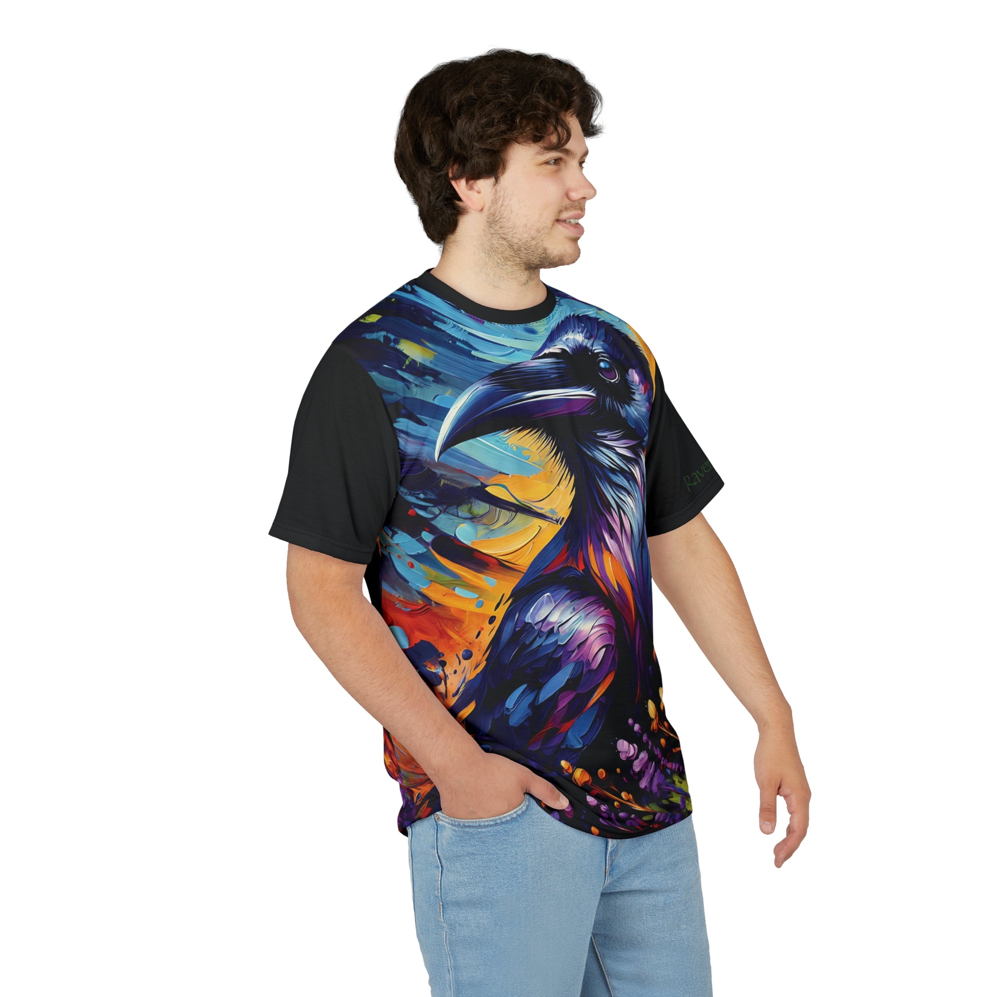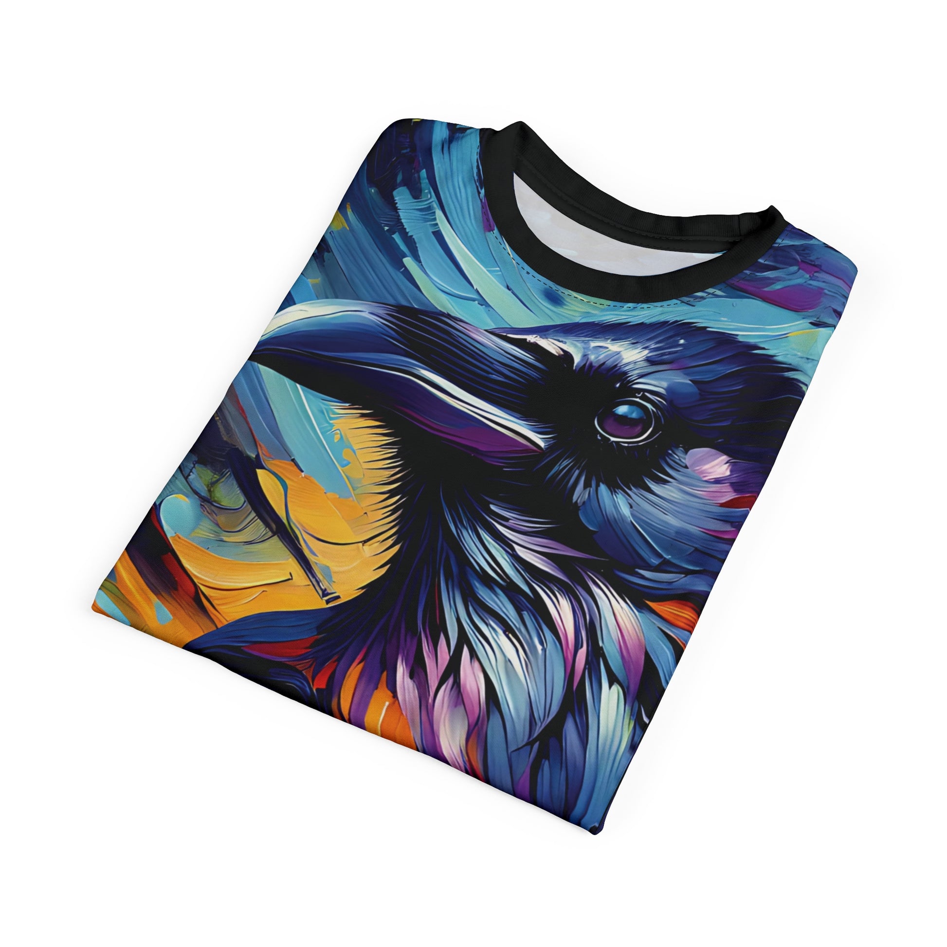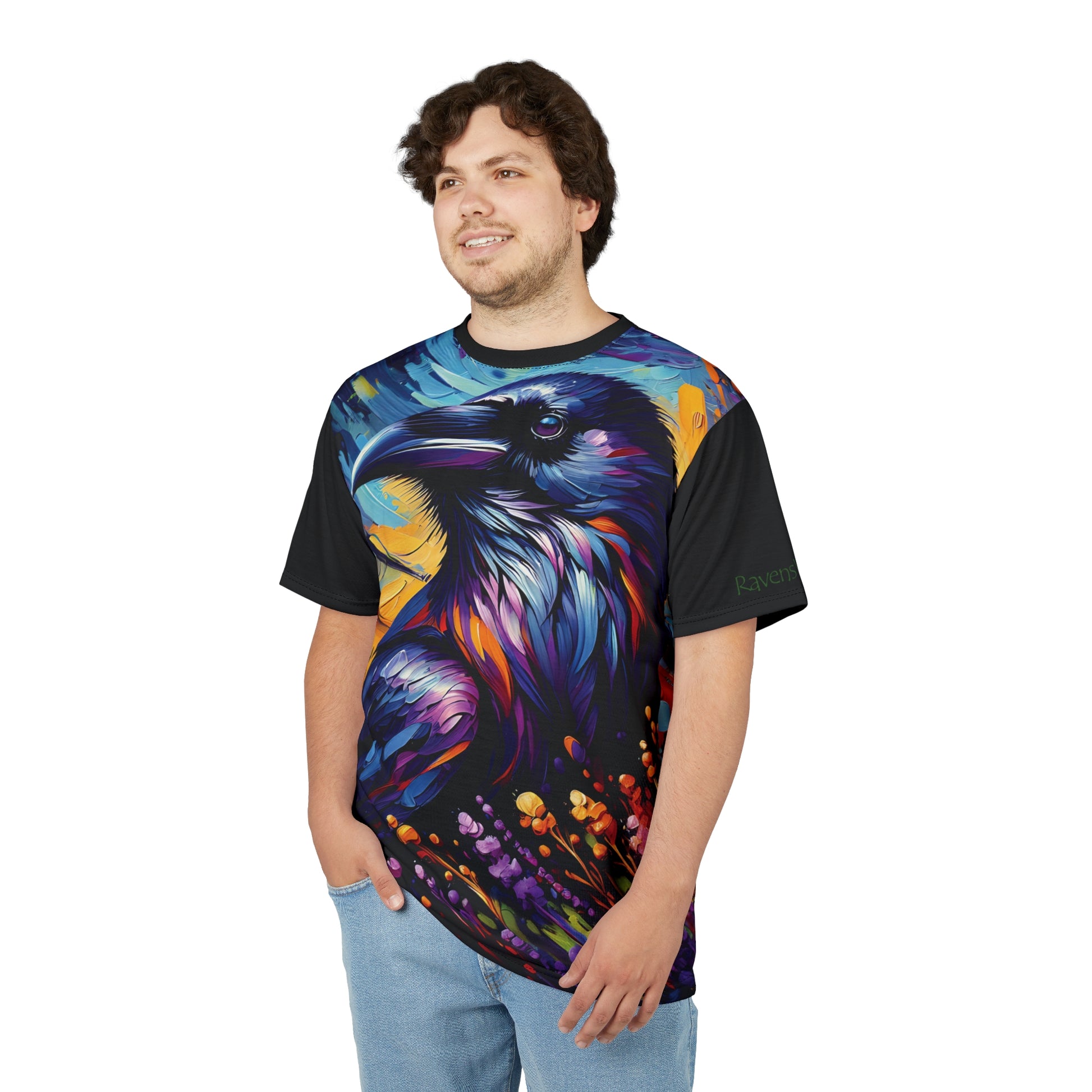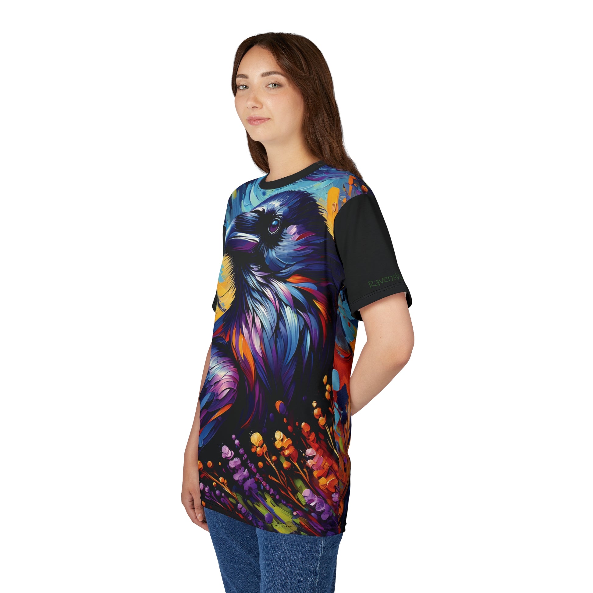 Colorful Raven Portrait Vibrant Art Tee | Colorful Unisex Cut & Sew T-Shirt, Wildlife Apparel, Unique Graphic Tee, Birthday Gift